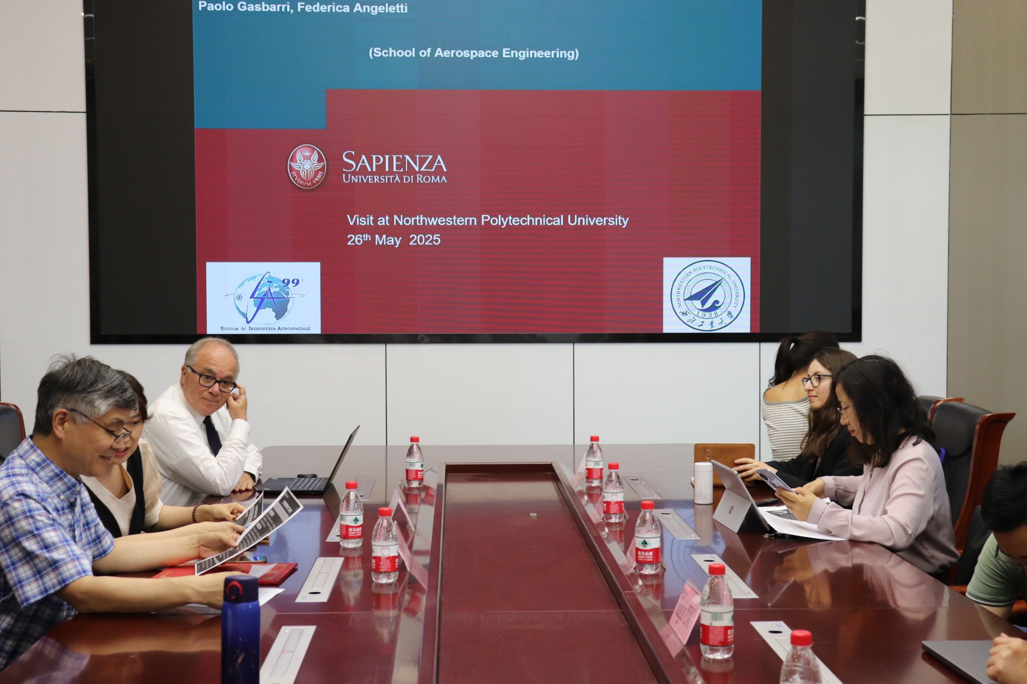 之后,肖曼玉教授介绍了我院相关情况。双方就本科生海外毕业设计、硕博联合培养暑期国际学堂等合作事项展开深入探讨。聂玉峰院长代表学院向 Paolo Gasbarri 教授颁发了“九章荣誉教授” 聘书,表达了对此次合作的高度重视。聂院长期待以此次合作为起点,推动两校在航天数学建模、复杂系统分析等领域的联合攻关,共同探索学术前沿,培养具有国际视野的高素质人才。