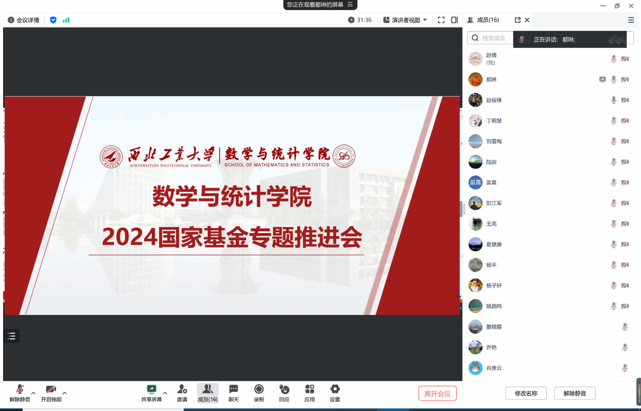 为切实提升学院2024年度国家自然科学基金申报质量,加强有组织科研,全面守好基金出口关,2月19日,k动漫 召开了2024年度国家自然科学基金专题推进会,本次会议主要面向首次申请基金的青年教师。学院副院长都琳教授、系主任陆由、赵俊峰、王亮及近20位青年教师线上参会,会议由都琳主持。