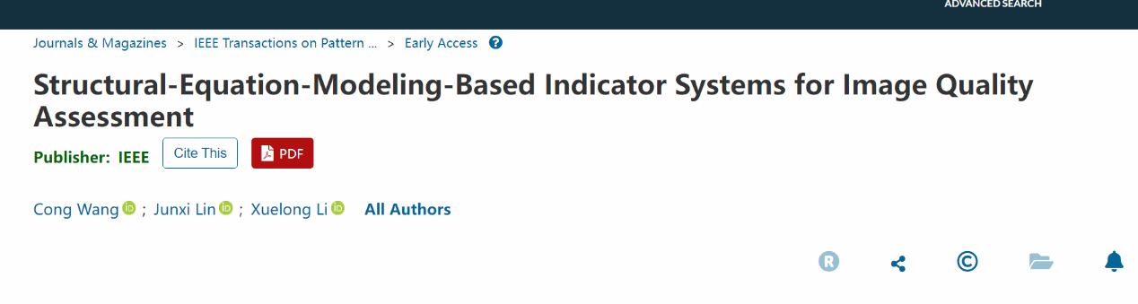 近日,我院数智科学系王聪副教授在图像质量评估方面取得突破,研究结果“Structural-equation-modeling-based indicator systems for image quality assessment”发表在人工智能领域顶级期刊IEEE Transactions on Pattern Analysis and Machine Intelligence (TPAMI, IEEE模式分析与机器智能汇刊,影响因子20.8),王聪副教授为该论文第一作者,李学龙教授为论文通讯作者,这是我院数智科学系组建以来首次在TPAMI期刊上发表重要研究成果,也是“数学+智能”学科交叉融合代表性成果之一。