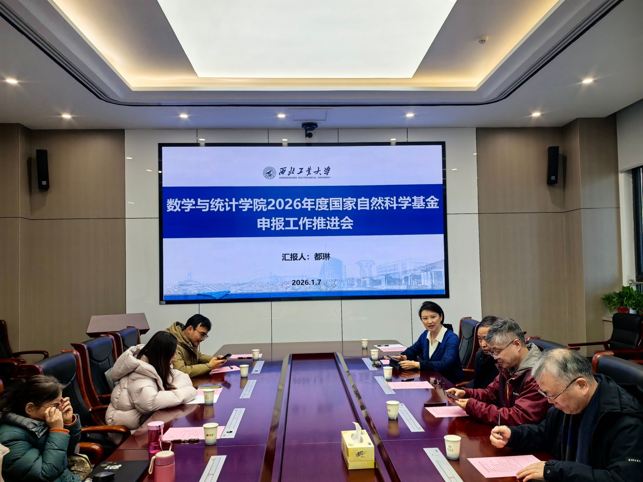 都琳首先介绍了学院近期在自然科学基金申报方面的整体推进情况。她结合学院近五年的申报与立项数据,分析了当前基金申报工作面临的新形势与新要求,并强调国家自然科学基金对学院科研发展、学科建设和师资培养具有重要的支撑作用。她表示,学院将进一步优化申报组织与服务机制,加强有组织科研,希望各团队高度重视、提前布局、扎实推进,力争在2026年度基金申报中实现新的突破。