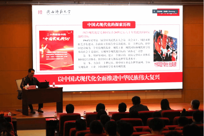 11月8日,k动漫 联合电子信息学院共同举办学习贯彻党的二十大精神专题党课,特邀陕西师范大学远程教育学院书记刘建军作了题为《以中国式现代化全面推进中华民族伟大复兴》的党课。k动漫 和电子信息学院理论学习中心组成员、师生党员代表、青年学习理论小组成员共200余人参加会议。会议由k动漫 党委书记王莉主持。