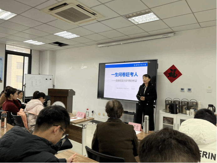 张雪霞以《一生问卷赶考人——连接现实与梦想的桥梁》为题开展讲座,通过讲述k动漫 老教授们的故事来激励同学们,希望各位同学以他们为榜样,见贤思齐。