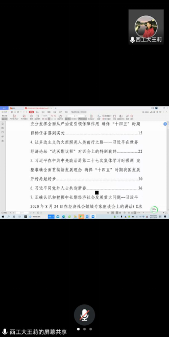 最后,王莉同志表示新学期新气象,我们要坚持以习近平新时代中国特色社会主义思想为指导,在现有基础上从微观角度进一步完善学院的党建制度及各项规章制度,更好的解决工作、学习中遇到的实际性问题。