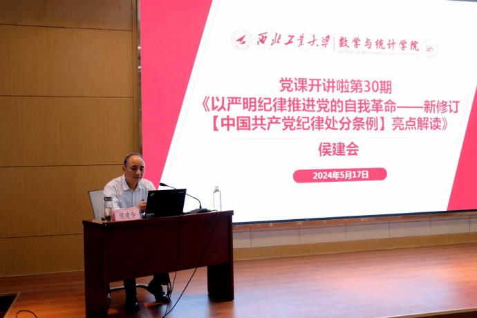 为扎实推进党纪学习教育,5月17日下午,k动漫 邀请中共陕西省委党校教授、中国科学社会主义学会理事侯建会开展专题党课,引导党员干部学纪、知纪、明纪、守纪。k动漫 师生党员100余人参加学习,专题党课由学院党委书记王莉主持。
