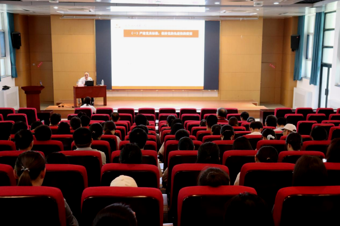 侯建会教授以《以严明纪律推进党的自我革命——新修订【中国共产党纪律处分条例】亮点解读》为题,全面阐述了修订《中国共产党纪律处分条例》的背景、过程及重大意义,紧紧围绕“六大纪律”,对新增的16条、修改的76条内容进行逐条讲解。同时结合真实案例,告诫党员领导干部牢记纪律是党的生命线,全体党员要深入学习领会《条例》核心精神。