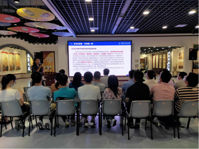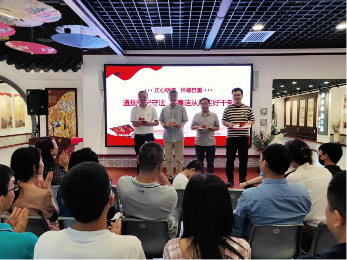 参观结束后,全体党员共同重温了入党誓词,提醒党员们应时刻牢记党员身份,履行党员义务,肩负党员责任,传承红色家风,学习榜样力量。随后学院党委书记王莉为全体教职工讲授了以“遵规守纪守法,做廉洁从政的好干部”为题的廉洁教育主题党课,运用警示教育案例结合工作实际,教育党员要从传承优良家风做起,从坚守党员责任义务做起,进一步增强遵纪守法意识,树牢底线意识,筑牢廉洁思想防线。活动最后王莉代表学院党委为六月过政治生日的5位党员赠送了政治生日贺卡。