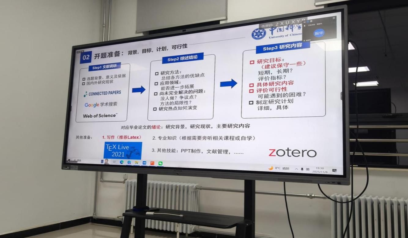 活动伊始,张倩老师介绍2026届本科毕设总体安排,鼓励同学们把握时间节点,主动汲取经验。随后,2021级优秀毕业生党员党振华同志系统梳理毕设全流程,重点解析开题、中期考核与毕业答辩的关键要点,并结合自身经历分享常见困难及应对策略。交流环节,党振华对现场提问逐一耐心解答,为即将启动毕设的同学们提供了可借鉴的“路线图”。