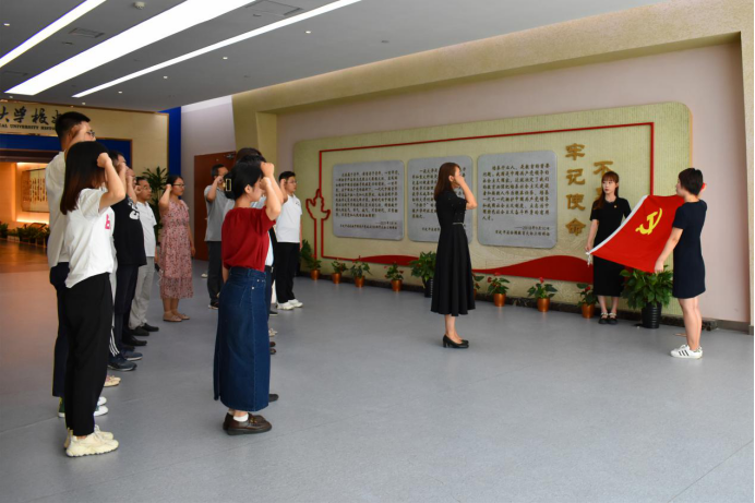 李长宏书记一行首先来到了k动漫 校史馆,先后参观了序厅、追根溯源、雄鹰展翅、翱翔腾飞和春华秋实五个部分,了解了我校发展历史、大学文化,以及典型人物和动人故事。参观结束后,两院的师生党员共同在党旗下庄严宣誓,重温入党誓词。