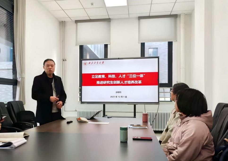 徐根玖围绕“加快建设教育强国、科技强国、人才强国”的战略部署,系统阐述了教育、科技、人才三者之间的内在联系,并指出研究生培养是三者的关键结合点。结合学院实际,他详细介绍了近年来学院在研究生招生与培养方面的改革举措及成效,激励全体成员牢记“为党育人、为国育才”的初心使命,着力提升人才培养质量。
