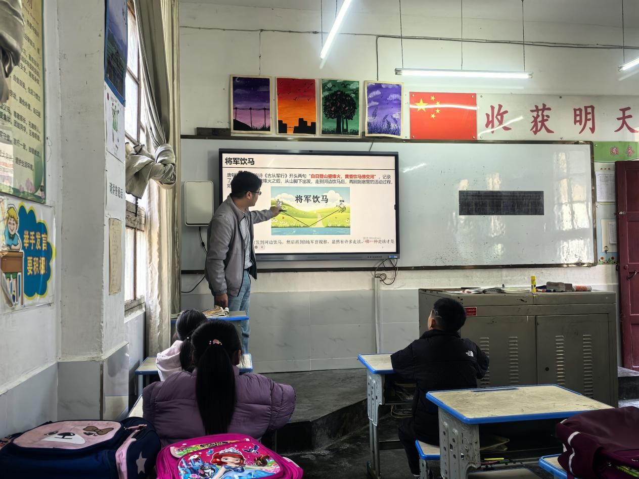 随后,学院一行前往宝山村齐家地小学开展教育帮扶活动,向学生们捐赠笔记本、文具等学习用品。彭江军老师以《数学之美·几何篇》为主题,为孩子们带来一场生动有趣的公益讲座,激发他们对数学学科的兴趣。随行学生组织小学生共同跳起健美操,在互动中传递健康向上的生活理念。
