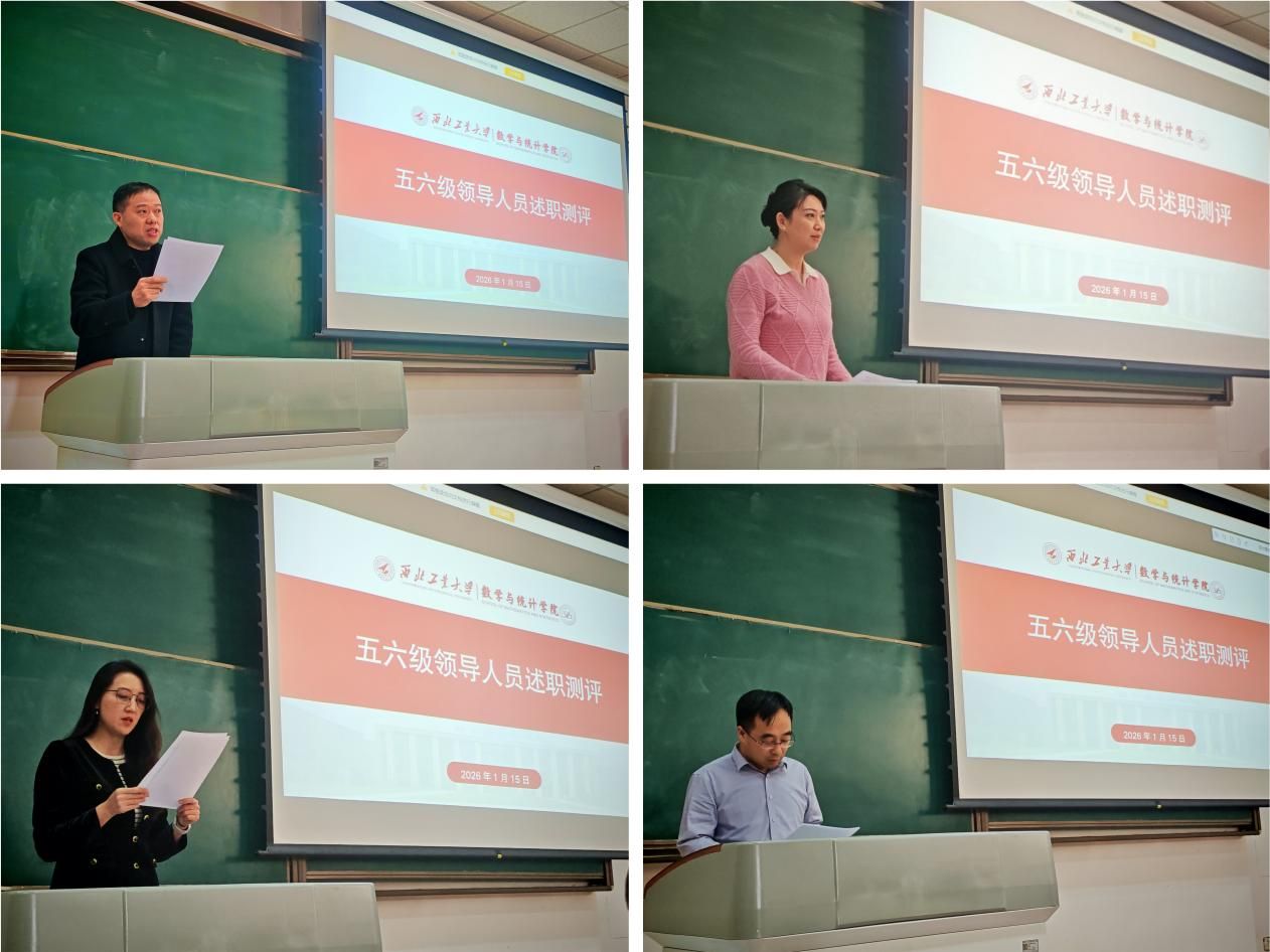 会议首先进行处级领导干部述职测评。学院院长聂玉峰、党委书记王莉、副院长徐根玖、都琳、郭千桥、党委副书记张莹围绕分管工作全面总结学院2025年在党建引领、队伍建设、人才培养、科学研究、国际合作等方面取得的进展,客观分析当前存在的不足,并就学科建设、人才引育、科研攻关等方面提出建设规划。全体教职工以无记名投票方式对领导班子2025年度履职情况进行民主测评。