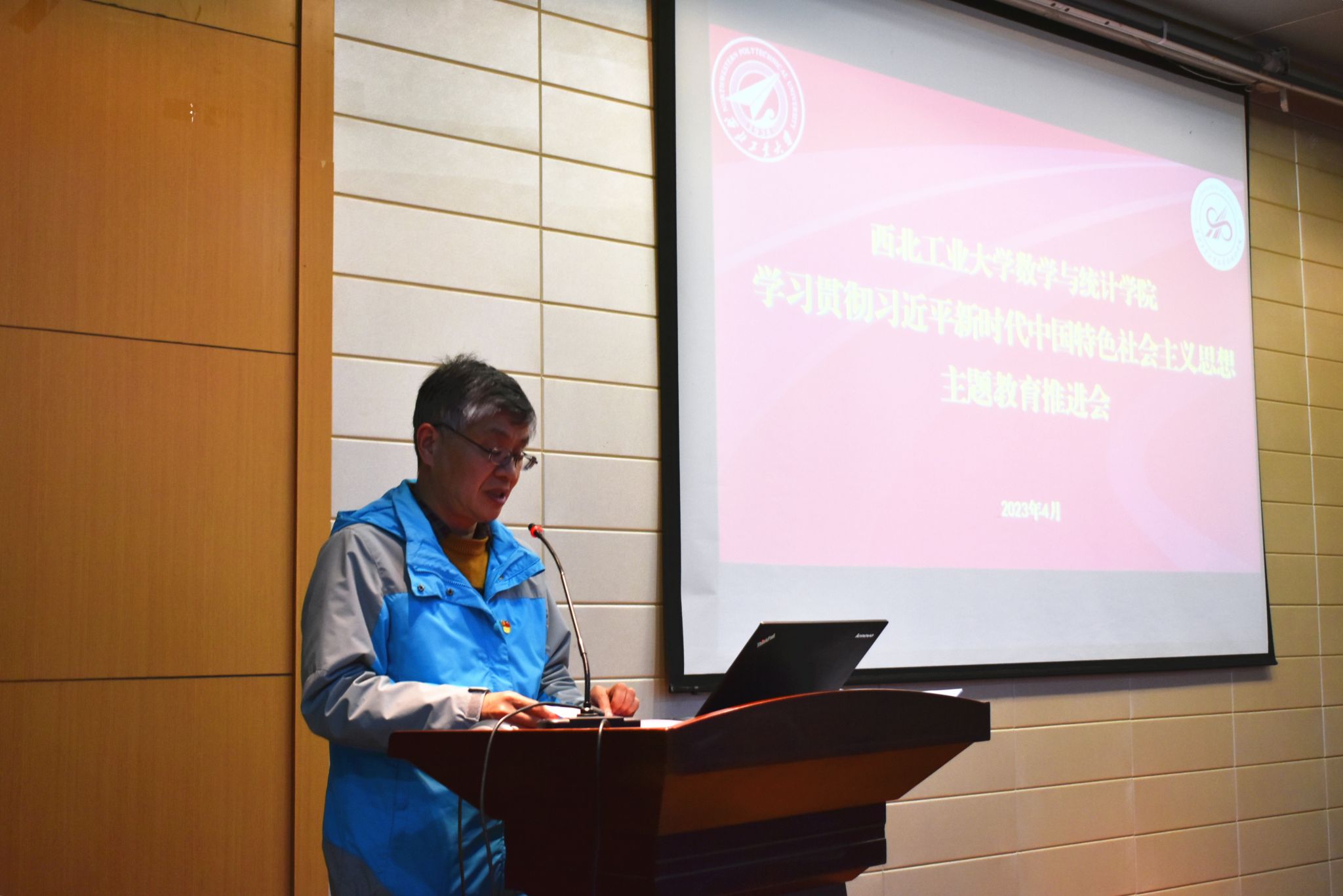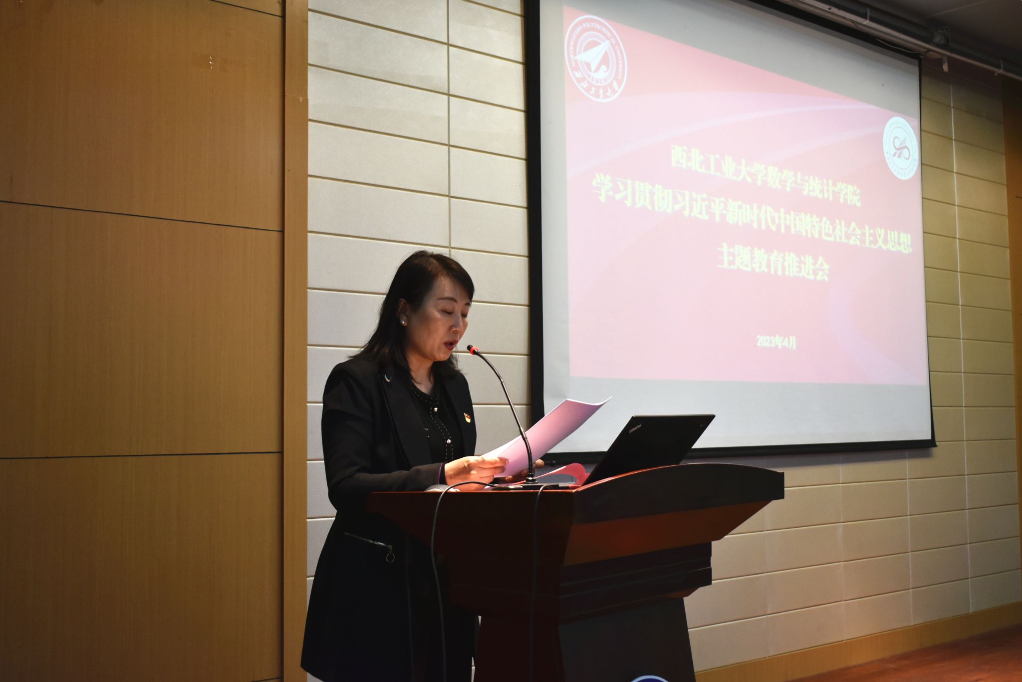 按照学校学习贯彻习近平新时代中国特色社会主义思想主题教育工作安排部署要求,进一步推动学院主题教育工作走深走实,4月25日,k动漫 在长安校区学院楼报告厅组织召开了学习贯彻习近平新时代中国特色社会主义思想主题教育推进会。学院领导班子全体成员,学院全体师生党员参会。会议由党委书记王莉主持。