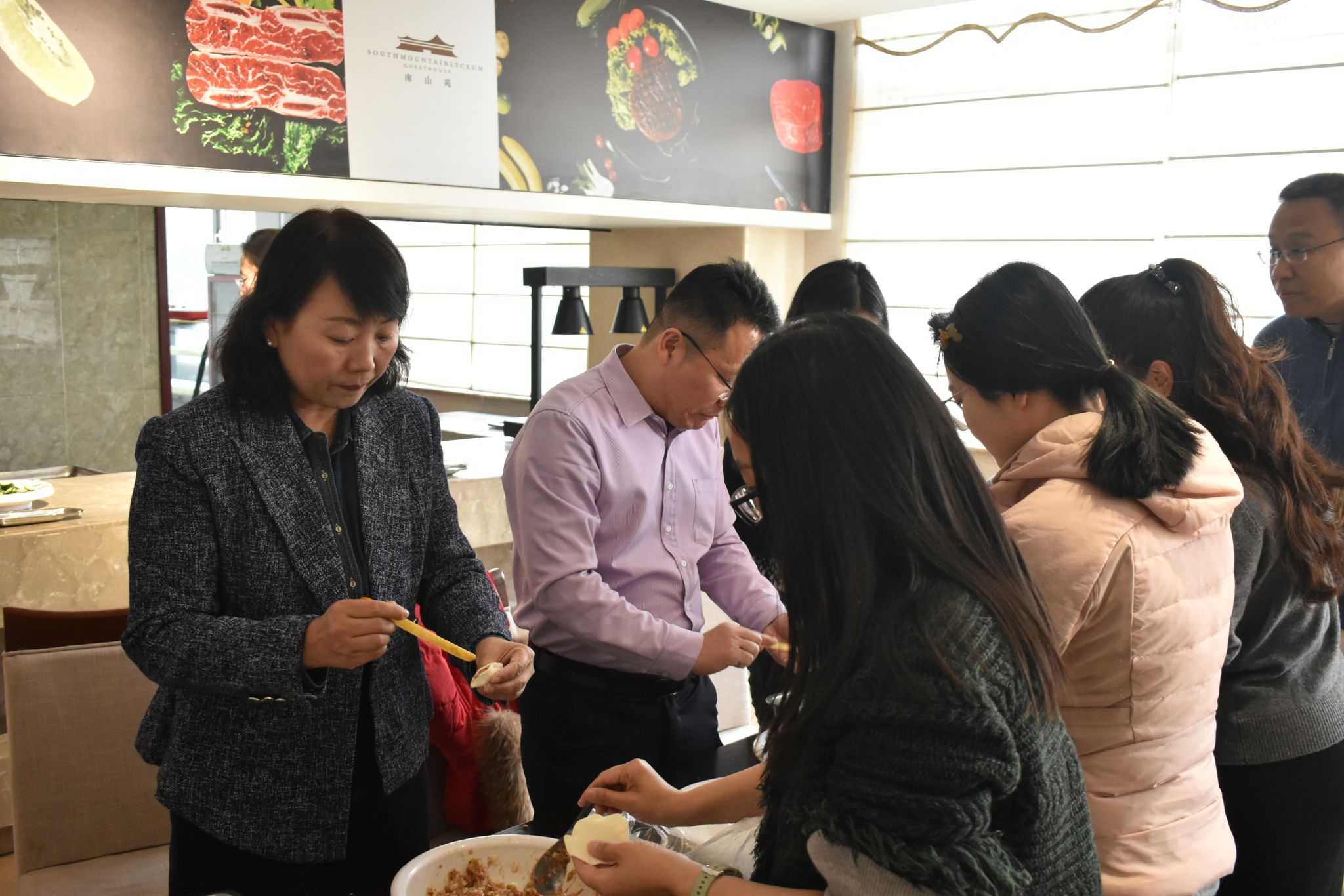 为进一步弘扬中华优秀传统文化,为即将到来的冬至佳节增添温馨与欢乐。12月20日,k动漫 工会在南山苑餐厅举办了“冬至欢聚、温暖前行”包饺子活动。党委书记王莉、副院长徐根玖、副书记张莹、工会主席佘红伟以及近30名教职工积极参与,共同体验包饺子的乐趣,感受冬日的温暖。