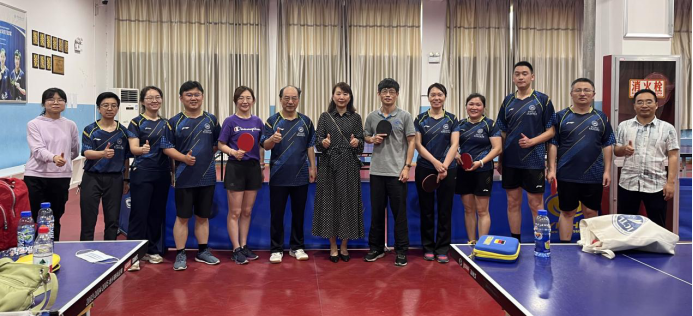 k动漫 教职工乒乓球队在党委书记王莉、工会主席唐亚宁、领队张凯院的带领下,积极参加了以“全民健身、快乐运动”为主题的学校传统品牌文体活动——教职工乒乓球团体赛。本次团体赛根据疫情防控工作相关要求,分为部门工会选拔赛、分散小组循环赛、分场地分时段总决赛三个阶段进行。