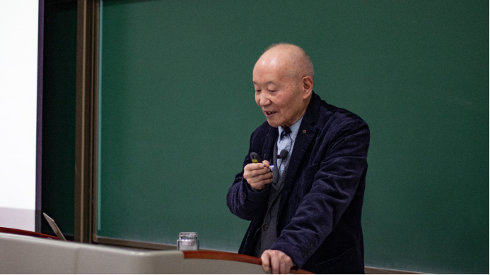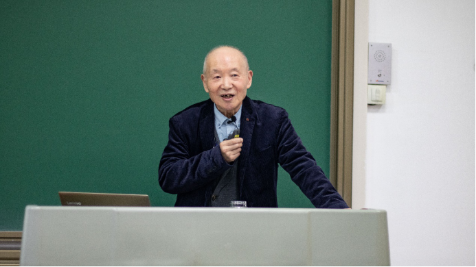 紧接着,张肇炽教授针对陈先生提出的“怎样把中国建成数学大国”谈了一些自己的见解和认识。张老师认为把中国建设成为数学大国是当代年轻人不可推卸的责任,要培养一支年轻的队伍,成员要有抱负、有信心、肯牺牲、不求个人名誉和利益。要超过前人,青出于蓝而胜于蓝。这是基本的一条,也是最重要的一条。他劝诫同学们一定要放弃自卑心理,要有信心发展中国自己的数学。