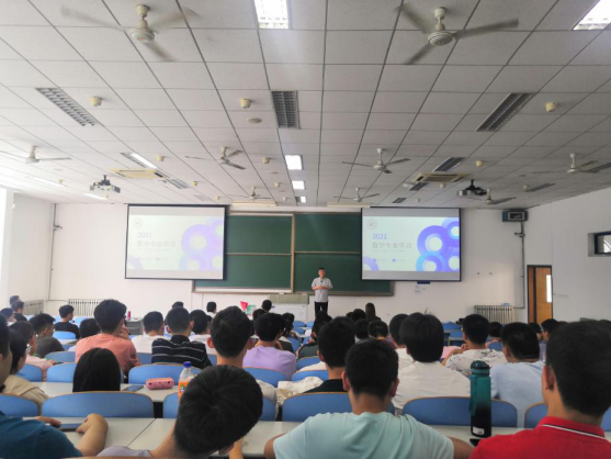 聂玉峰院长以《数学专业学习》为题,首先讲到学习的目的,作为新时代的大学生,尤其处在这个国际风云变幻的年代,要有国家情怀,从国家需求角度立自己的志向。随后,聂老师详细介绍了大学数学专业的五大块学习内容,即分析、代数、几何、随机和计算。聂老师希望大家打好扎实的基础,并找到自己最感兴趣的部分,深入进去学习和研究。最后,聂老师给大家介绍了数学的学习方法。一是学会选择恰当的学习工具;二是学习中要富有好奇心、求知欲和想象力;三是学习中要会发问。讲座结束前,聂老师又勉励同学们好好学习,科学合理规划大学四年时间,奋发图强,创造自己的精彩绚烂!