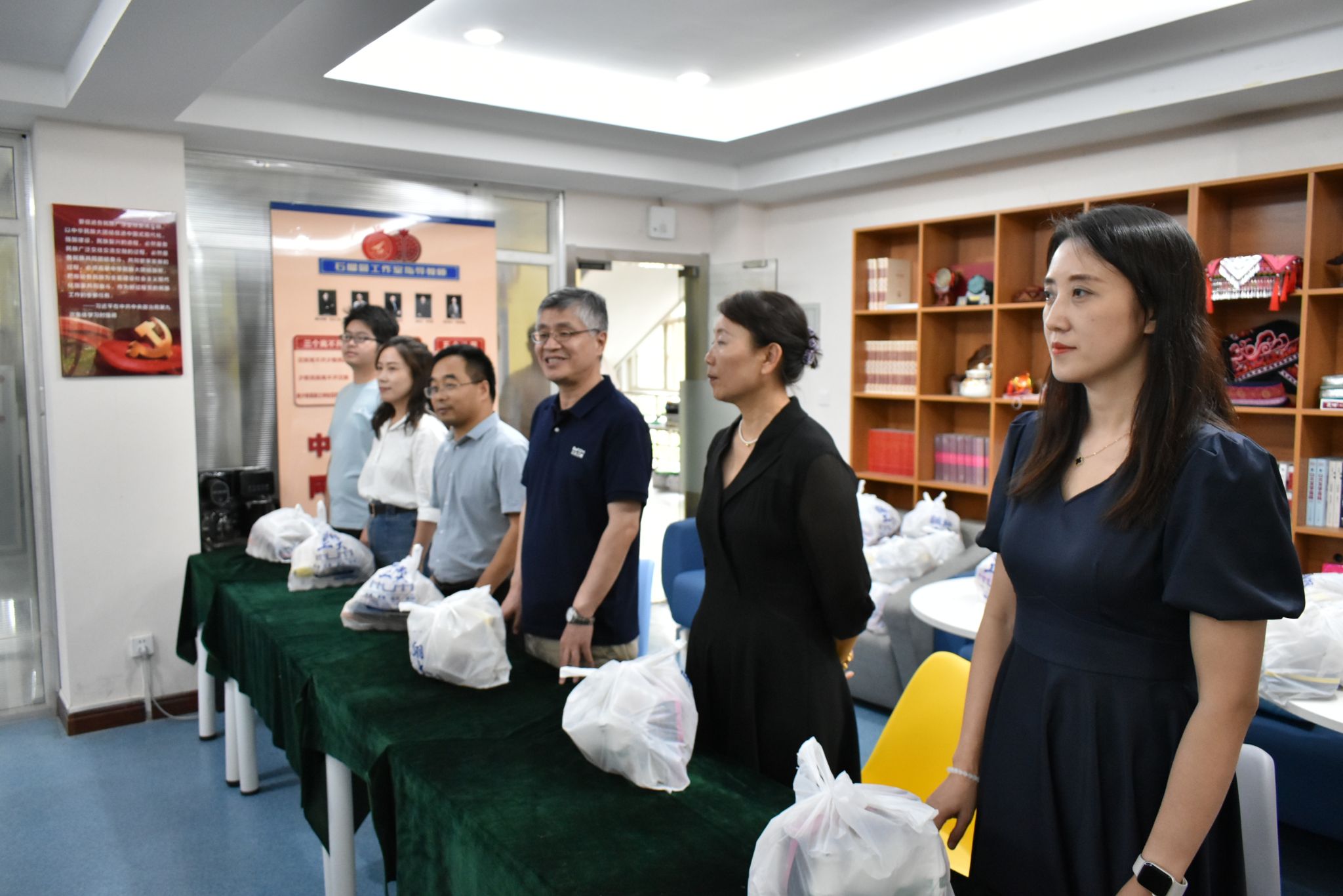 丹桂飘香又中秋,数统萌新度佳节。为进一步强化学校、学院人文关怀,让学院新生开心圆满地度过中秋佳节,2024年9月13日,k动漫 院长聂玉峰、党委书记王莉、党委副书记张莹、副院长郭千桥与新生班级辅导员、班主任们深入学生宿舍,为全体大一新生送上学生处集体采购的团圆月饼以及祝福零食礼包,38个新生宿舍学生代表参会领取,场面温馨,氛围感人。