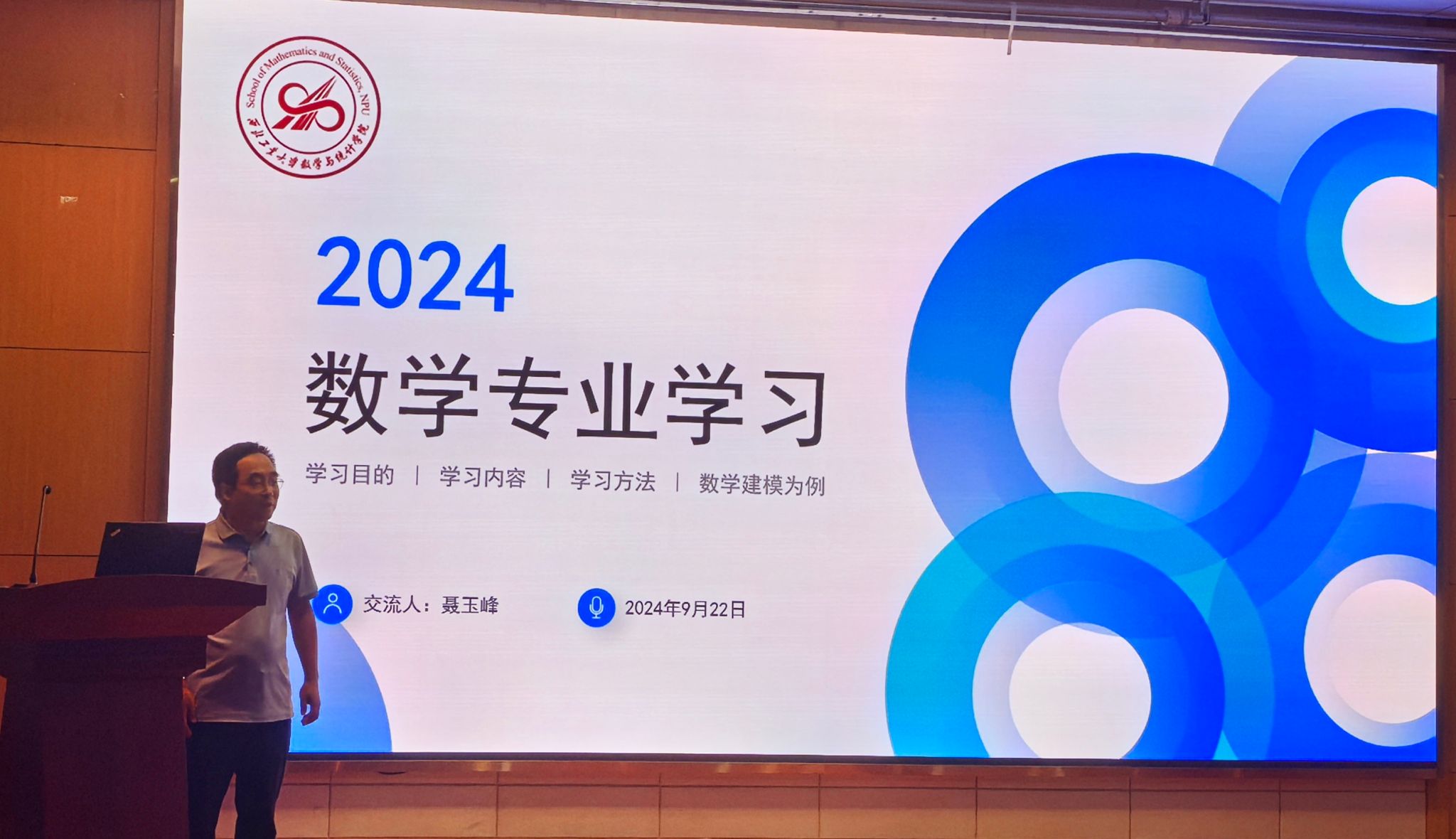 9月22日, k动漫 院长聂玉峰为2024级149名本科新生讲授了关于数学专业学习的主题思政课,引领大家进一步深刻体会学院“坚持‘科学问题导向,应用问题驱动’,践行‘数学+’、‘+数学’的创新人才培养模式”以及未来建成人才培养与科学研究并重、应用特色鲜明的国内一流k动漫 的远大目标。学院数学科学系主任陆由、计算科学系主任赵俊锋、应用概率统计系主任王亮、院长助理兼2024级本科生辅导员班凯共同聆听了这生动的一课。报告会由副院长郭千桥主持。