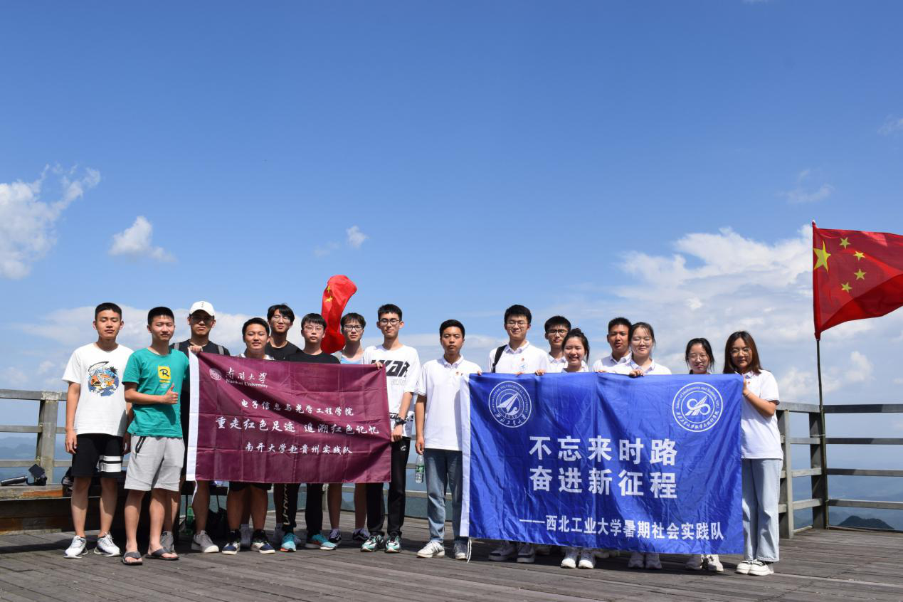 29日下午,实践队乘车来到了娄山关革命遗址的最高峰-西凤台,在这里,实践队与南开大学社会实践队展开交流互动,同走革命长征之路。南开大学实践队队员表示:我们无法真正走完整个长征,感受先辈们不屈不挠的精神品质,但在这里,也身临其境的感受到了“红军不怕远征难,万水千山只等闲”的肝胆豪情。实践队做出回应:长征精神会光照千秋,流传万古。这是一种宁可牺牲自我,去顾全大局的团队精神。中华民族自古以来就有埋头苦干的人,有为民请命的人,有舍身求法的人。作为全国的两所重点大学,国家985工程建设高校,更是要起到一个带头的作用,把长征精神,代代传承下去。交流结束后,两队一起合影留念。