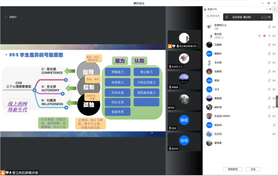 在经验分享环节,计算机学院王云岚副教授从为师之道、学业规划、日常管理、风险管控等8个方面介绍班级管理心得,强调了因材施教、分类指导等细节管理的重要性。王云岚老师在分享中还提出,“管理好学生的最好时机是大一开学,其次是现在”,班主任老师应充分发挥自身专业优势,全面提升班级学生的专业素养及创新能力。紧接着,k动漫 裴斌教授作《全过程精准画像、全方位整合资源、全覆盖帮扶提升》专题分享。裴斌老师强调了坚持为党育人、为国育才的初心使命,介绍了“以学生为中心、润物细无声”的班级育人理念,提出了贯穿班级管理始终的“三航筑梦、促学笃行、强基固本、创新赋能、塑造价值”思想,并就“导学+必学+互学+督学”的班级管理模式进行了着重分享。随后,计算机学院林奕副教授以《我有一个梦想》为主题,从培养什么样的学生、学生类别、学生成长的动机与特殊学生指导、班级管理存在的问题与建议等4个方面展开分享,重点指出人才培养的任务不仅仅是传承而是超越。此外,林奕老师提出了建立班主任工作资源库、班委工作指南、建立心理专家支持渠道等班级管理方面的可行性建议。通过三位老师对班主任工作的理解、感悟和思考,与会人员均表示参加本次交流会收获颇丰,为今后做好班主任工作指明了方向。