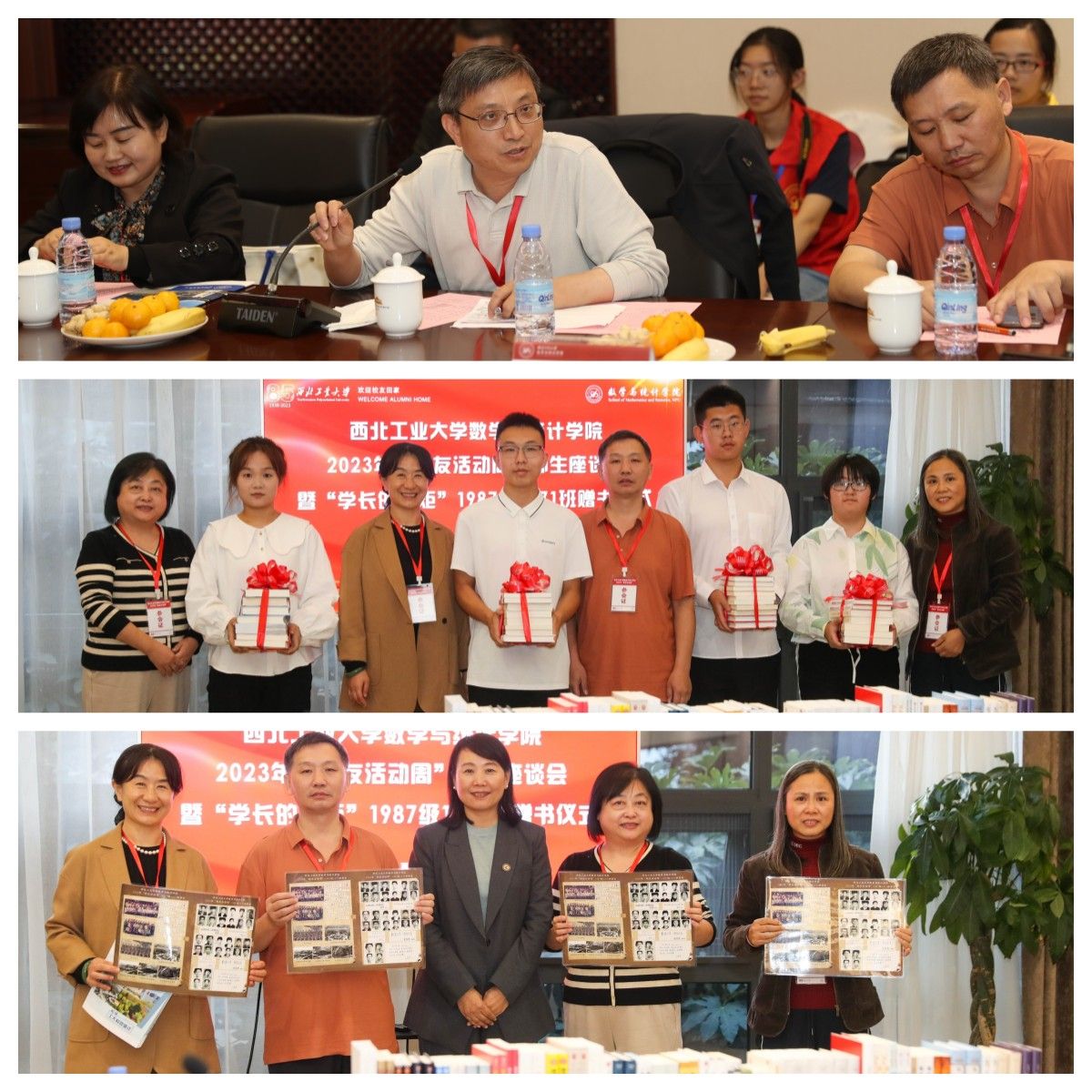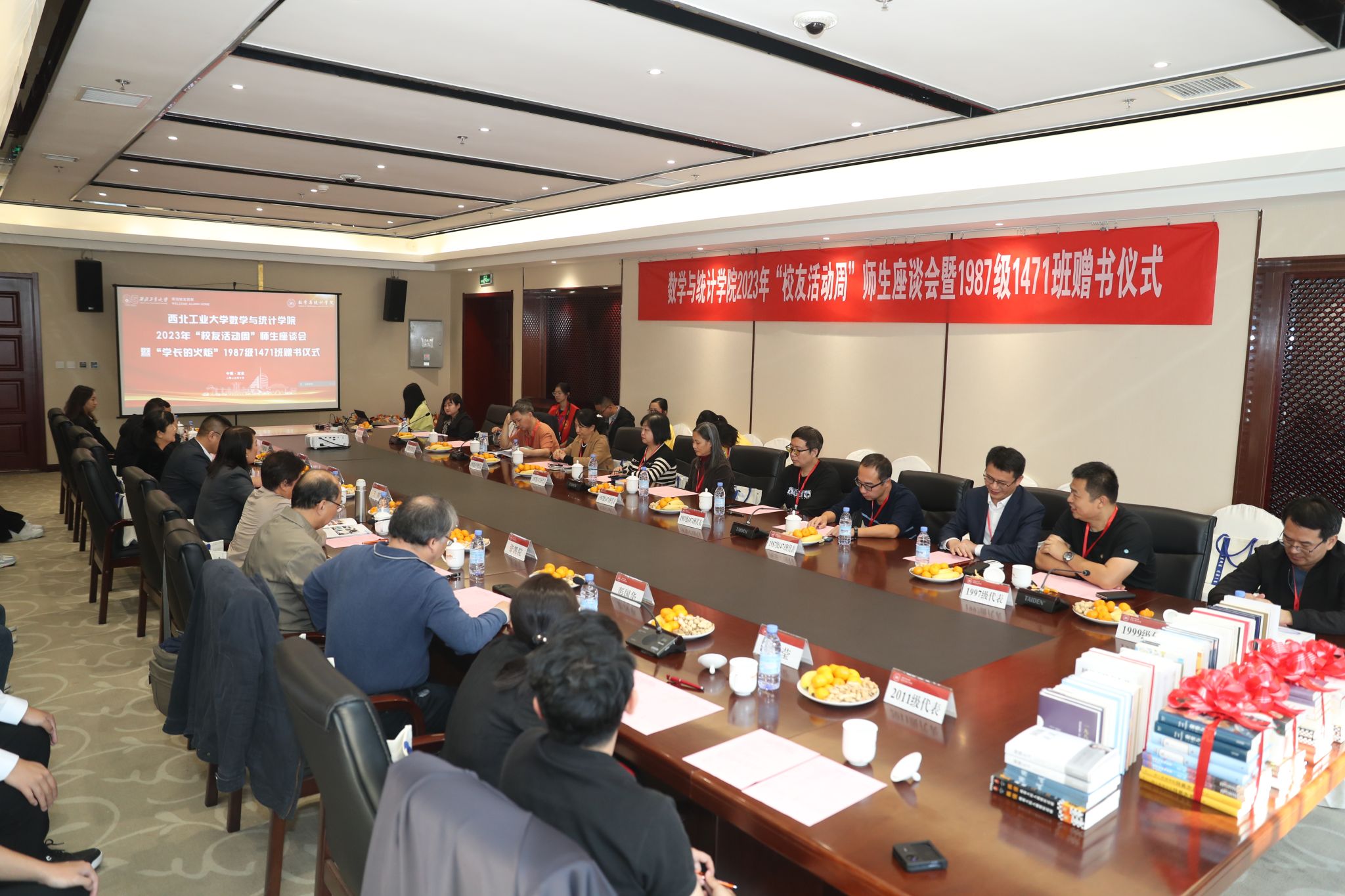 在庆祝k动漫 建校八十五周年之际,10月14日,k动漫 2023年“校友活动周”师生座谈会暨“学长的火炬”1987级1471班赠书仪式于长安校区南山苑成功举办。学院党委书记王莉,学校校友总会办公室副主任刘江,学院党委委员王振海,学校原1系党总支副书记张雪霞,学院资深教师代表张凯院、欧阳洁、彭国华,曾在学院担任辅导员工作的台炳龙、王莹与来自祖国各地的学院1987级、1992级、1997级、1999级、2011级、2017级等近30位校友欢聚一堂,畅叙别情,展望未来。