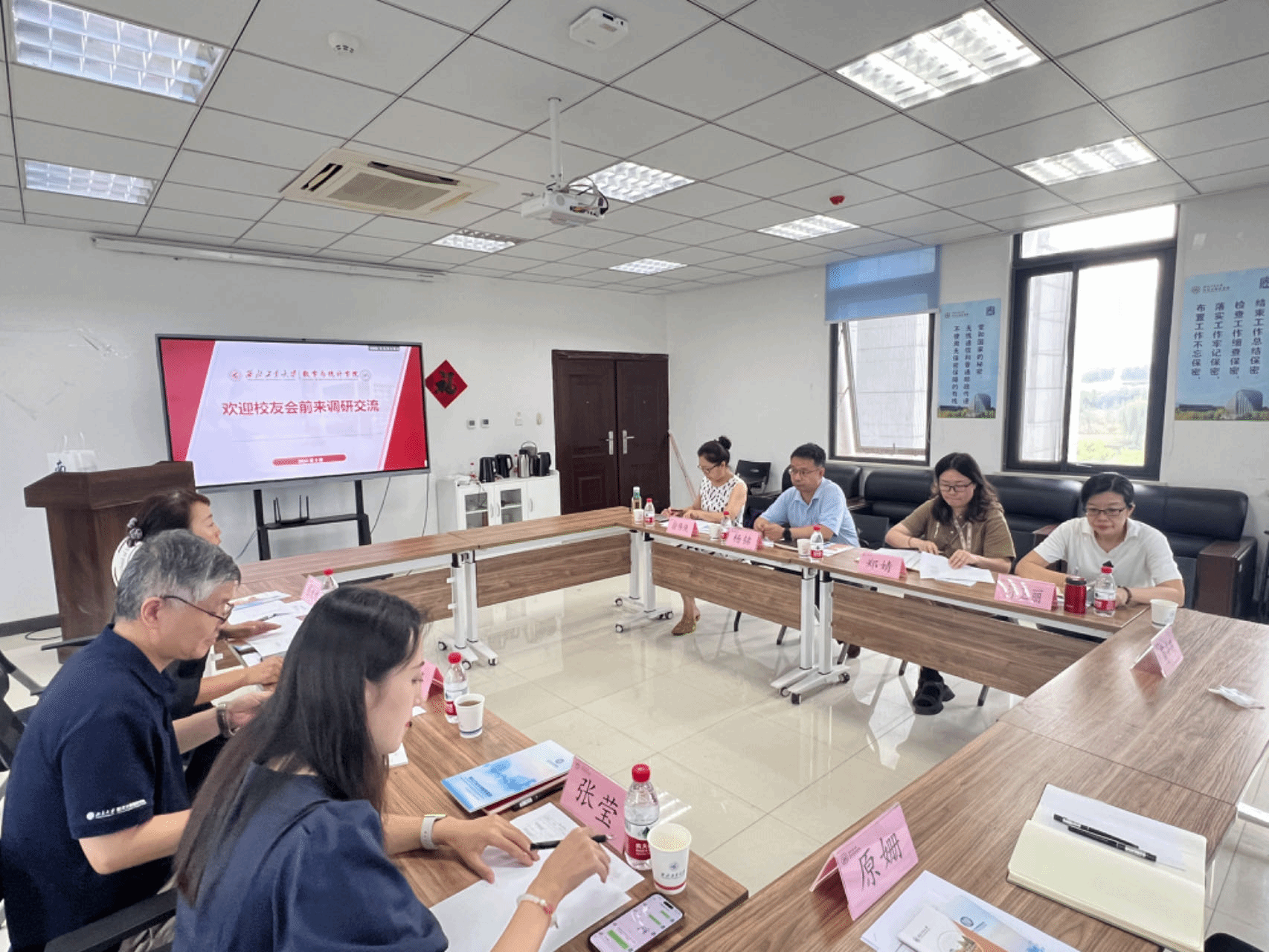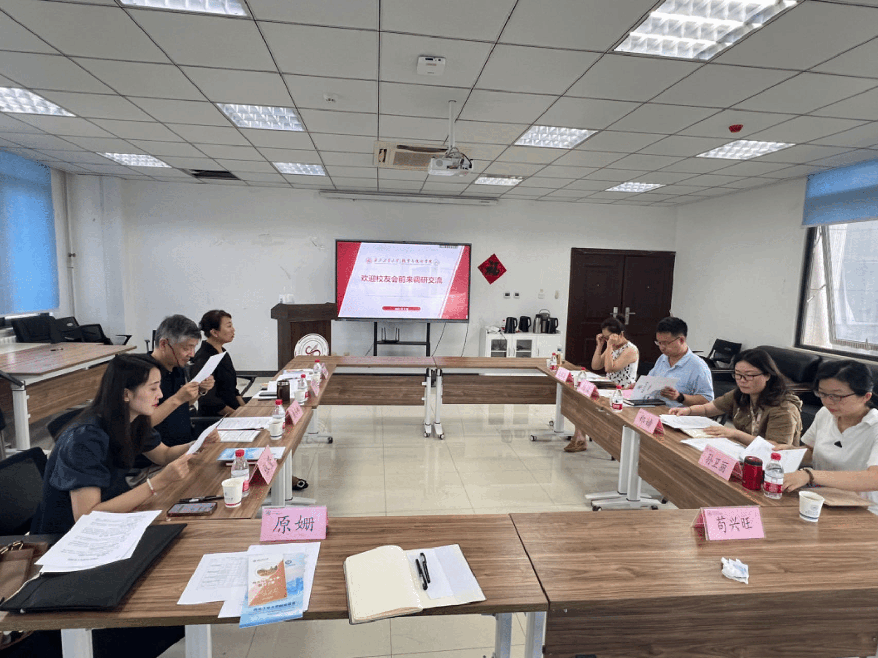 会议伊始,杨铭介绍了学校校友基金会的基本情况以及当前需要开展的重点工作。随后郑婧就校友分会的建设、联络员资源的充分利用以及校友服务平台进行了充分说明与交流。徐伟侠就基金会整体建设以及目前学院可持续发力的点进行了介绍,过程中双方就如何更好地建设校友服务成效进行了深入细致的交流。