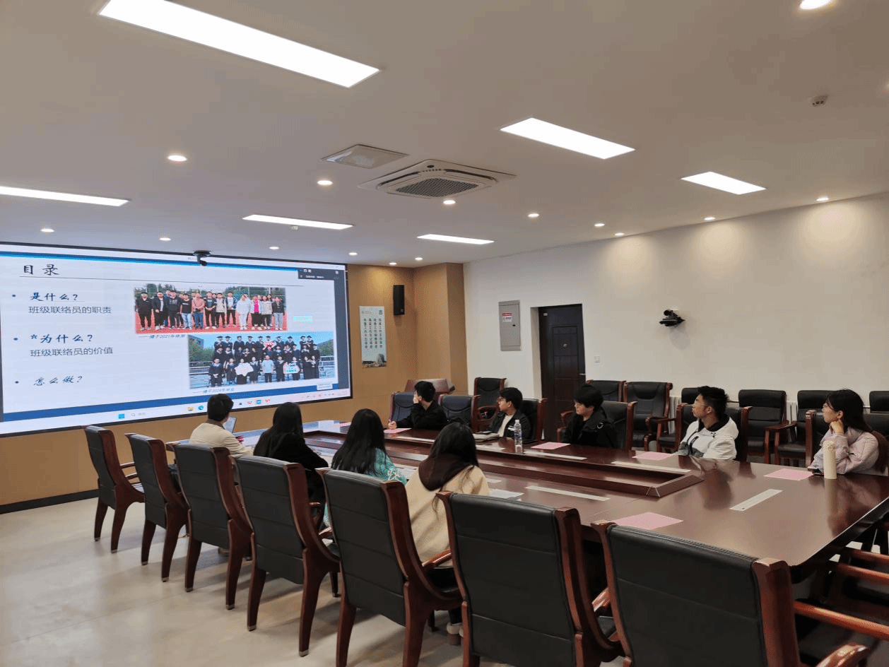 会议第一项,程姣姣介绍了学校开展校友班级联络员的背景及意义,明确了校友班级联络员的职责,指出了校友工作的重要意义,同时对学院校友工作开展情况进行了简要介绍。随后宣读了2025届校友班级联络员名单,祝贺各位班级联络员的同时表达了对各位校友班级联络员积极参与工作的感谢。
