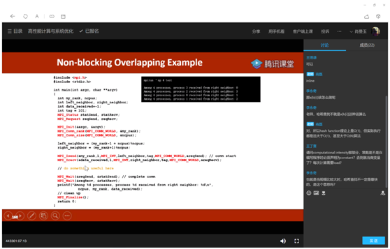 2020年7月21日-7月30日,k动漫 暑期国际讲堂《高性能计算与系统优化》通过腾讯课堂线上授课圆满完成。该课程由学院邀请海纳国际集团的亚太地区技术负责人商磊博士(特聘研究员)进行授课。来自教育实验学院、计算机学院、k动漫 、动力与能源学院、物理科学与技术学院、管理学院、西工大伦敦玛丽女王大学工程学院的本科、研究生及旁听师生共计40余名参加了学习。