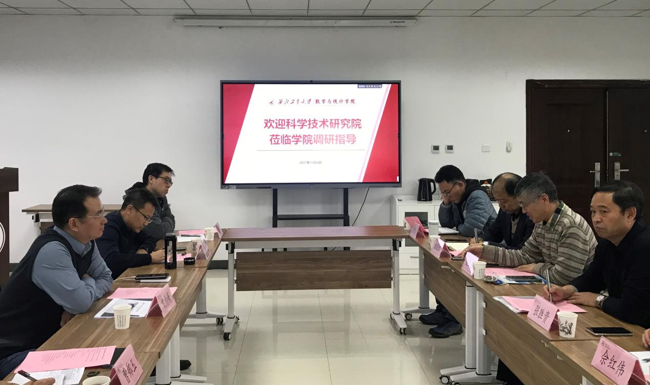 双方就如何提升学院科研平台建设水平进行了充分交流和讨论,与会教师表示将不断强化基础理论研究与应用实践,推进学院科研平台建设。科学技术研究院表示将进一步科学规划、有效组织基础学科平台建设,与学院共同助力学校“双一流”发展。会后,科学技术研究院一行参观了学院的西安市重点实验室。