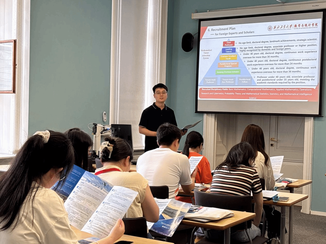 7月3日下午,学院代表团于俄罗斯圣彼得堡国立大学研究生院楼315会议室开展了人才交流活动。本次交流会吸引了来自俄罗斯及“一带一路”沿线国家的二十余位优秀海外博士和博士后参与,现场氛围热烈,互动频繁。