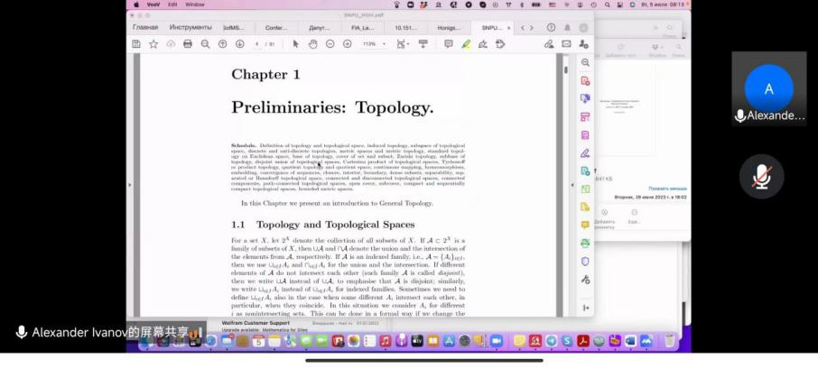 2022年7月19日,由莫斯科国立大学机械和数学学院的Alexander O. Ivanov教授讲授的暑期国际讲堂《Hyperspaces: Hausdorffand Gromov-HausdorffDistances Geometry》课程圆满结课。本课程由k动漫 牵头,夏常春老师具体负责,采用腾讯会议网络授课。
