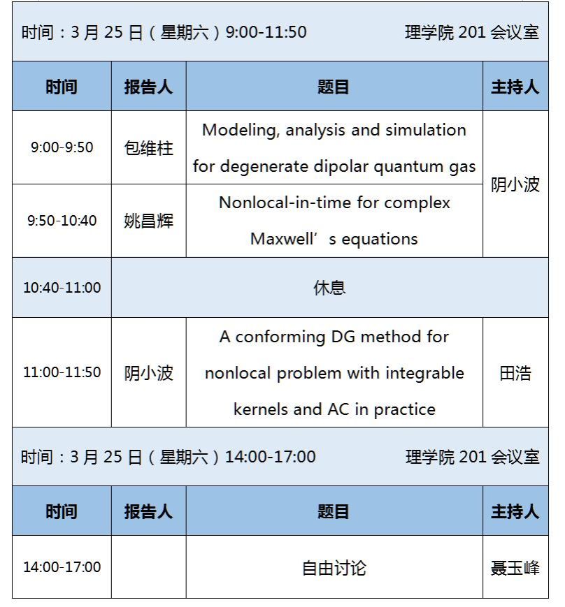 南山计算论坛依托西安市科学计算与应用统计重点实验室、k动漫 计算科学研究中心和International Journal of Numerical Analysis and Modeling期刊,由k动漫 科学计算团队主办,旨在为计算学者们提供一个自由宽松的交流、合作和展示研究成果的平台,达到相互促进、共同提高之目的,从而推动计算学科的发展和青年教师的成长。南山计算论坛第一期和第二期分别于2022年12月10日和2022年12月 18日通过线上会议举行。第三期将于2023年3月24-25日在理学院201会议室线下举行,欢迎各位老师和同学积极参与交流。
