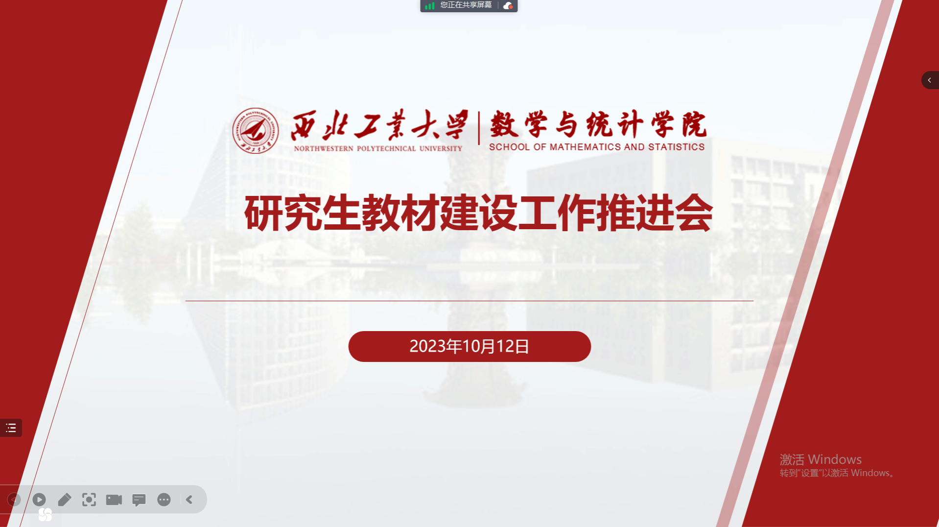 为推动陕西省理工类高校工科硕士研究生数学基础课程教材共建共享,加快k动漫 校级立项教材、基础前沿课教材建设进程,提升教材建设质量,2023年10月12日下午,我院通过腾讯会议线上组织研究生教材建设工作推进会。院长聂玉峰、副院长徐根玖、研究生公共课课程负责人、“十四五”校级规划教材建设项目负责人、基础前沿课程负责人等20余名教师参加会议。推进会由徐根玖主持。