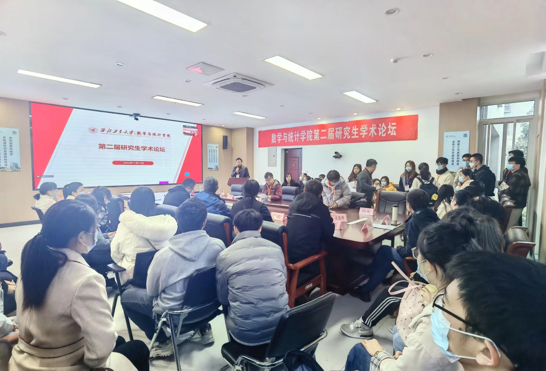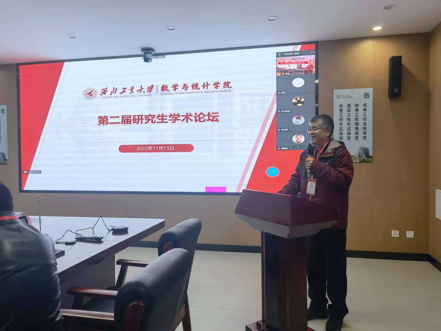 为进一步落实数学学科“双一流”建设,深入贯彻落实学校《一流研究生人才培养行动计划》,营造研究生学术创新氛围,2022年11月13日,k动漫 在k动漫 长安校区召开第二届研究生学术论坛。根据疫情防控相关要求,本次论坛采取分设理学楼A201、A214、A315三个会场,线上线下结合的方式举行。党委书记王莉、院长聂玉峰、副院长徐根玖、副院长都琳以及二级学科负责人、青年教师代表、各年级研究生、其他高校师生等共230余人分别通过线上线下的形式参加了本次论坛,论坛由副院长徐根玖主持。