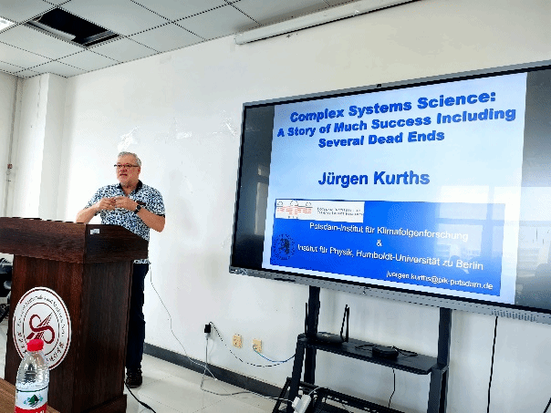 2023年6月8日上午10:30,应k动漫 都琳教授的邀请,德国洪堡大学Jürgen Kurths教授在启翔楼357做了题为《Complex Systems Science: A story of much success including several failures》的学术报告。复杂系统动力学与控制工信部重点实验室都琳教授、张红慧副教授、张硕副教授、范艾利副教授等多位老师以及40余名硕士、博士研究生参加了此次报告会。报告会由都琳教授主持。