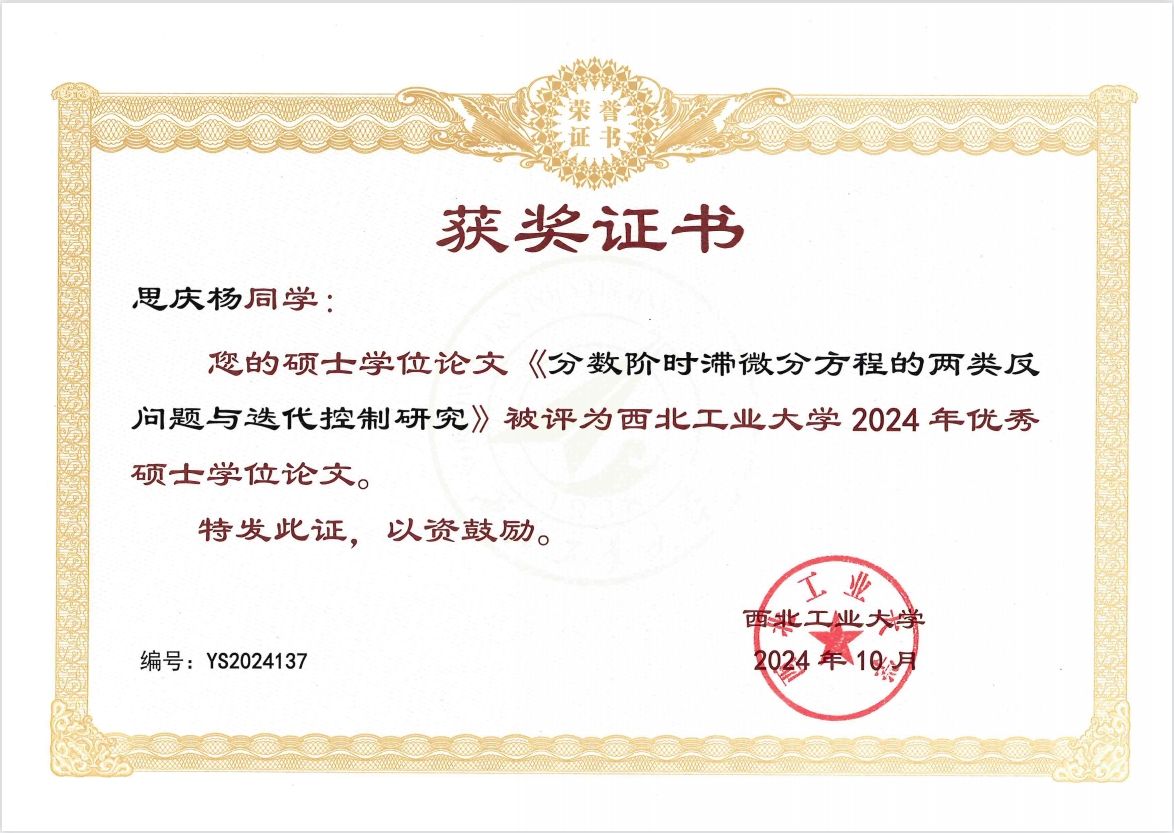 《分数阶时滞微分方程的两类反问题与迭代控制研究》-思庆杨(导师:王俊刚)