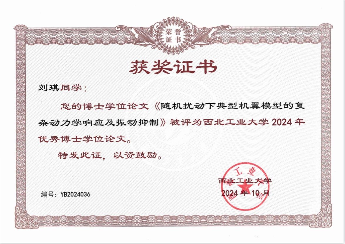《随机扰动下典型机翼模型的复杂动力学响应及振动抑制》-刘琪(导师:许勇)
