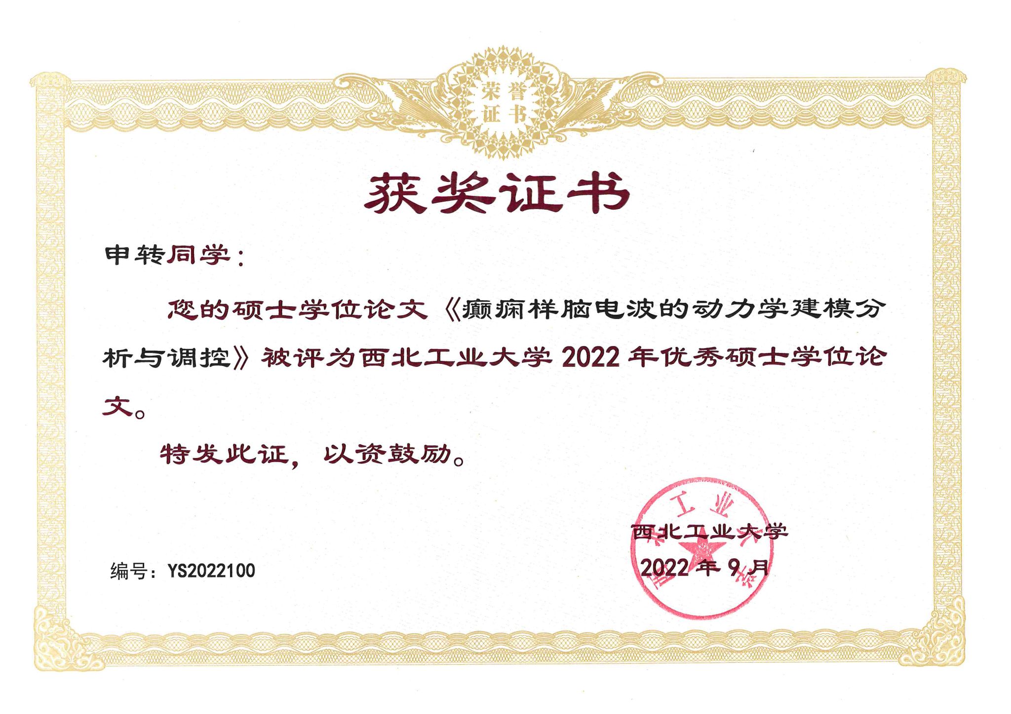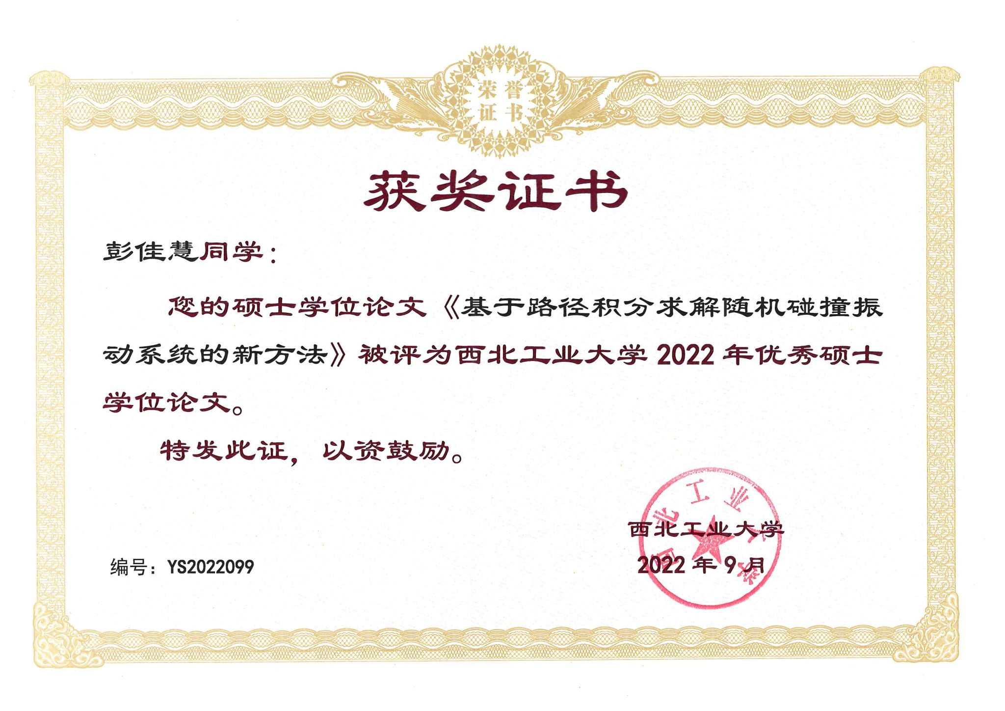 第一届研究生学术论坛获二等奖,并荣获2022年优秀毕业生称号。