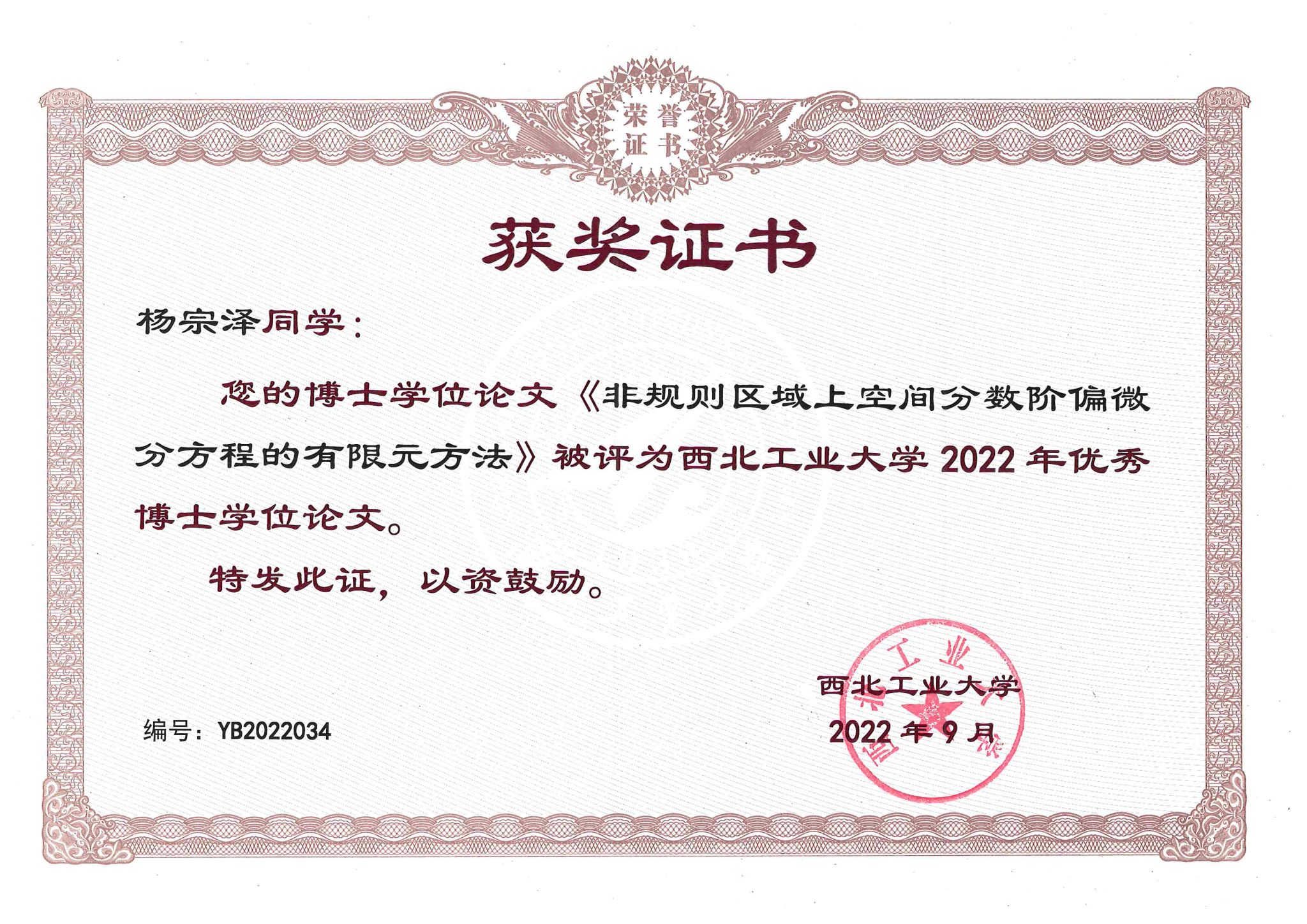 优秀博士学位论文:杨宗泽(导师:聂玉峰)、白旭超(导师:师义民)