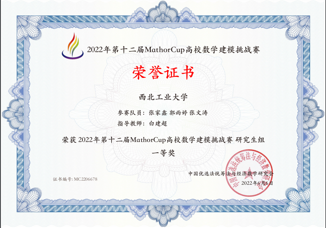 学生在第十二届MathorCup高校数学建模挑战赛中斩获研究生组一等奖