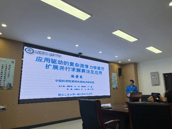 陈荣亮做了题目为“应用驱动的复杂流体力学高可扩展并行求解算法及应用”的学术报告,陈荣亮从流体力学的典型应用领域讲起,介绍了新一代超级计算机,并从数学物理模型、非线性系统高效求解算法和典型工程应用等方面介绍了他们课题组在复杂流体力学模拟仿真算法和应用方面的最新研究进展。报告结束后,陈荣亮与与会师生就感兴趣的问题进行了激烈交流探讨。