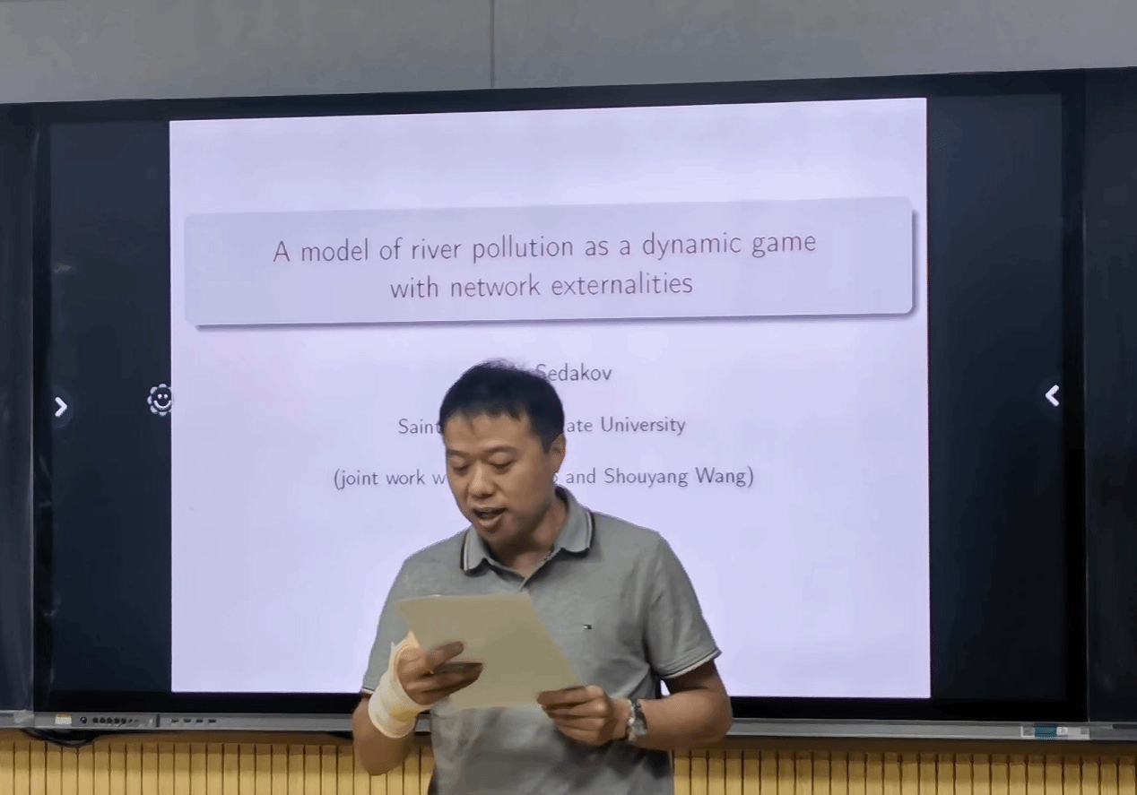 2023年5月15日-5月20日,受徐根玖教授邀请,圣彼得堡国立大学Artem Sedakov教授访问k动漫 ,进行学术交流并商谈相关合作事宜。5月15日上午,Artem Sedakov教授于理学楼315会议室做了题为 “A model of river pollution as a dynamic game with network externalities”的学术报告。报告由徐根玖教授主持,40余名师生参加了学术报告交流。