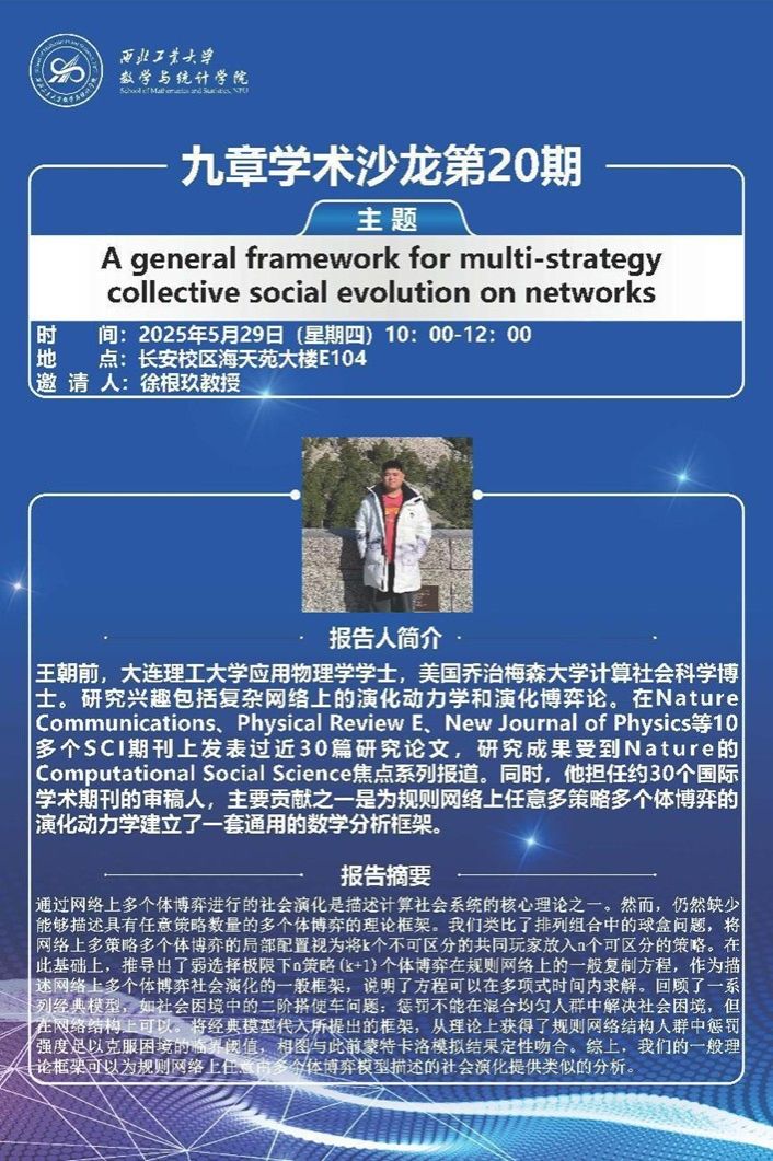 5月29日,美国乔治梅森大学(George Mason University)计算社会科学博士王朝前到访k动漫 ,为我院师生带来题为《A general framework for multi-strategy collective social evolution on networks》的学术分享。学院20余位师生参会,会议由副院长徐根玖教授主持。
