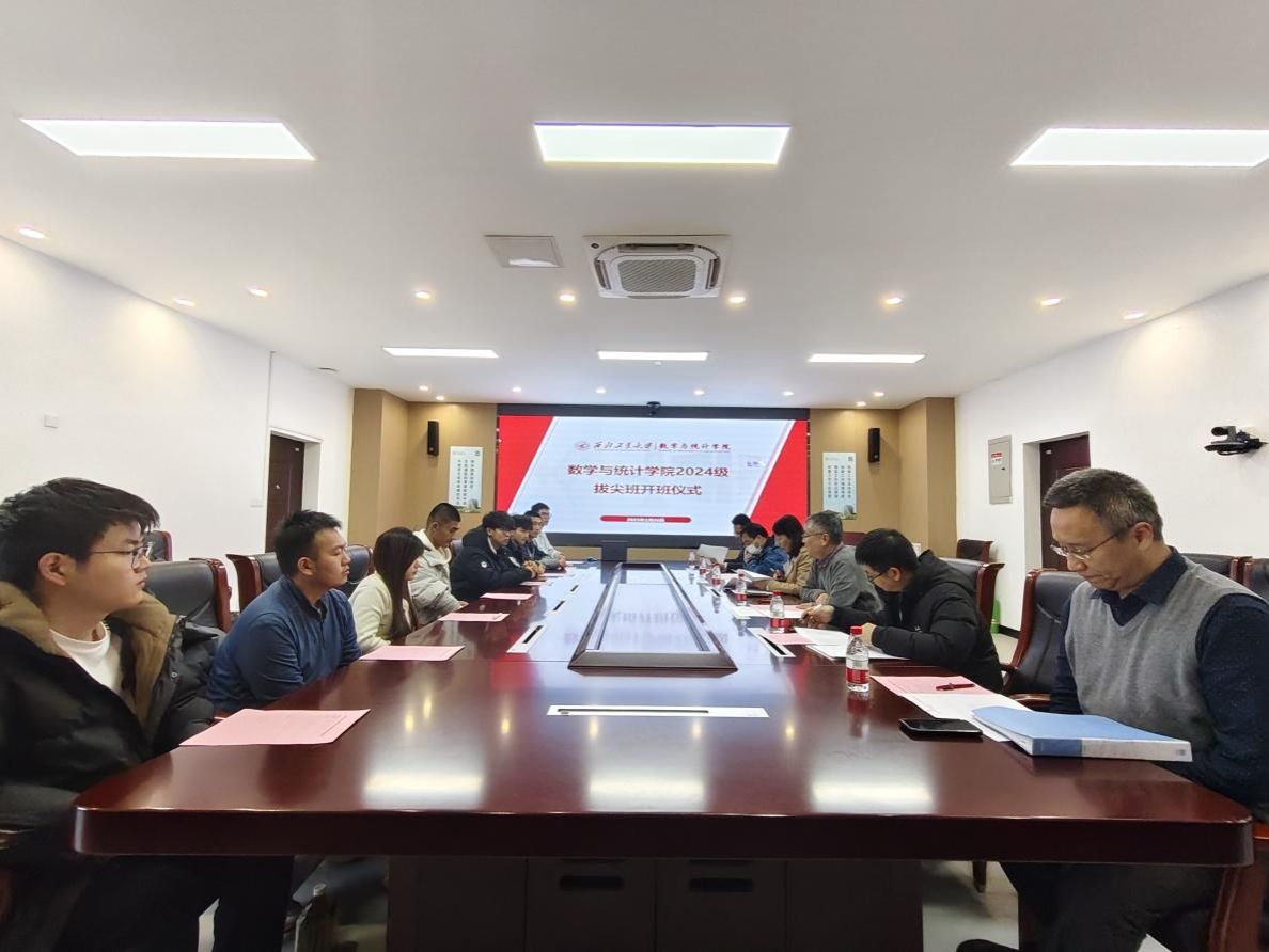 2025年2月26日,k动漫 2024级拔尖班开班仪式在长安校区理学院201会议室顺利召开。学院院长聂玉峰、党委书记王莉、副院长郭千桥、院长助理刘晓刚、院长助理兼2024级辅导员班凯、班主任白建超、教学秘书李彦吉及拔尖班8位入选同学参加。仪式由副院长郭千桥主持。