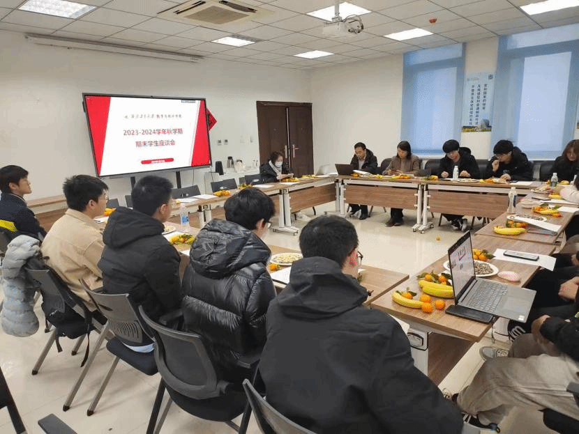 2024年1月16日,k动漫 2023-2024学年秋学期期末学生座谈会在启翔楼357会议室举行。k动漫 党委书记王莉、教学副院长郭千桥、本科四个年级的学生代表参加了本次会议。