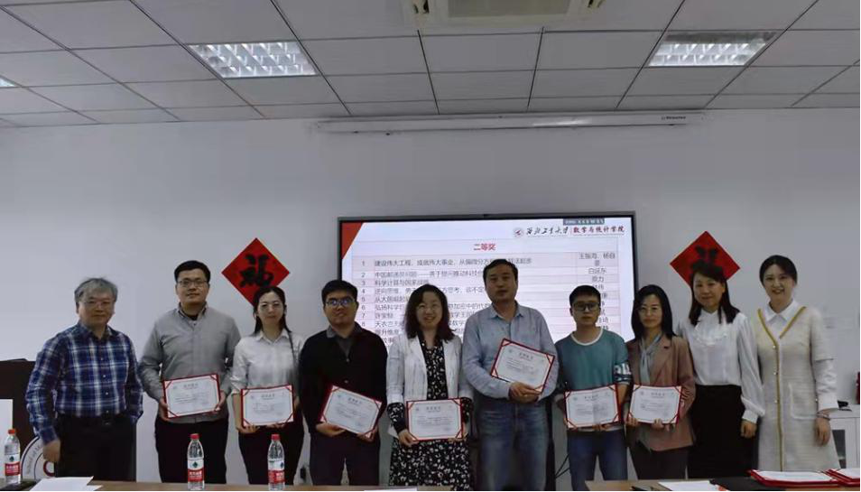 为贯彻落实《一流本科人才培养行动计划》,全面推进课程思政建设,提升全体教师的课程思政意识,充分发掘课程育人功能,k动漫 举办首届数学类课程思政教学案例设计大赛。本次大赛由k动漫 课程思政教学研究中心主办,共收集数学类课程思政教学案例160余例,经初评、外审和会评三个环节,共评出特等奖5项、一等奖10项和二等奖14项,并于4月8日在启翔楼357进行颁奖典礼。学院党委书记王莉、副院长都琳、教学委员会主任彭国华以及20余位获奖教师出席了此次颁奖典礼,典礼由学院课程思政中心副主任潘璐璐老师主持。