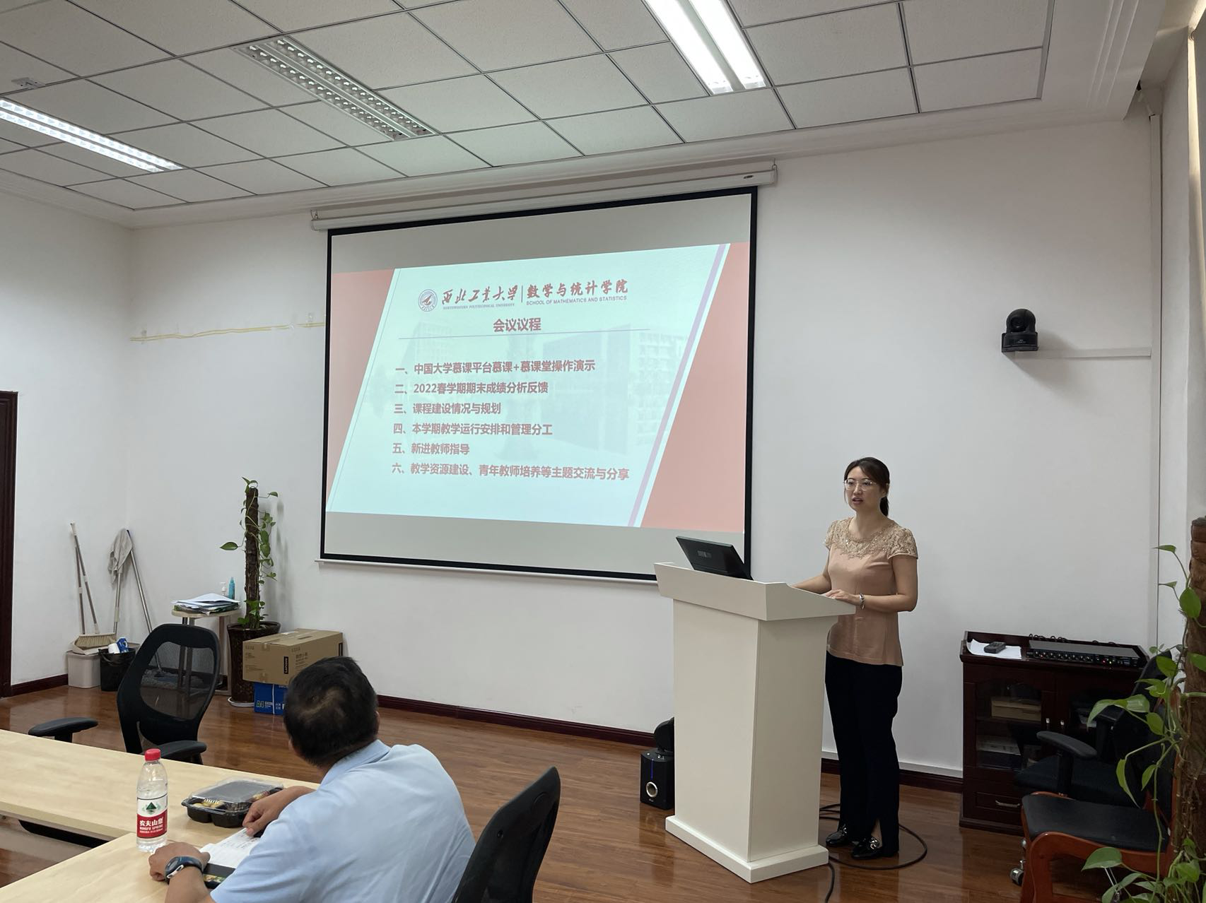 最后,会议开展了新进教师指导、青年教师培养等主题交流与分享。师义民老师作为优秀教师代表同青年教师分享了课程教学经验,强调了激发学生的学习兴趣的重要性,交流了大班教学的教学技巧和宝贵经验。与会教师逐一分享了课程教学经验,提出了多个建设性意见和建议。