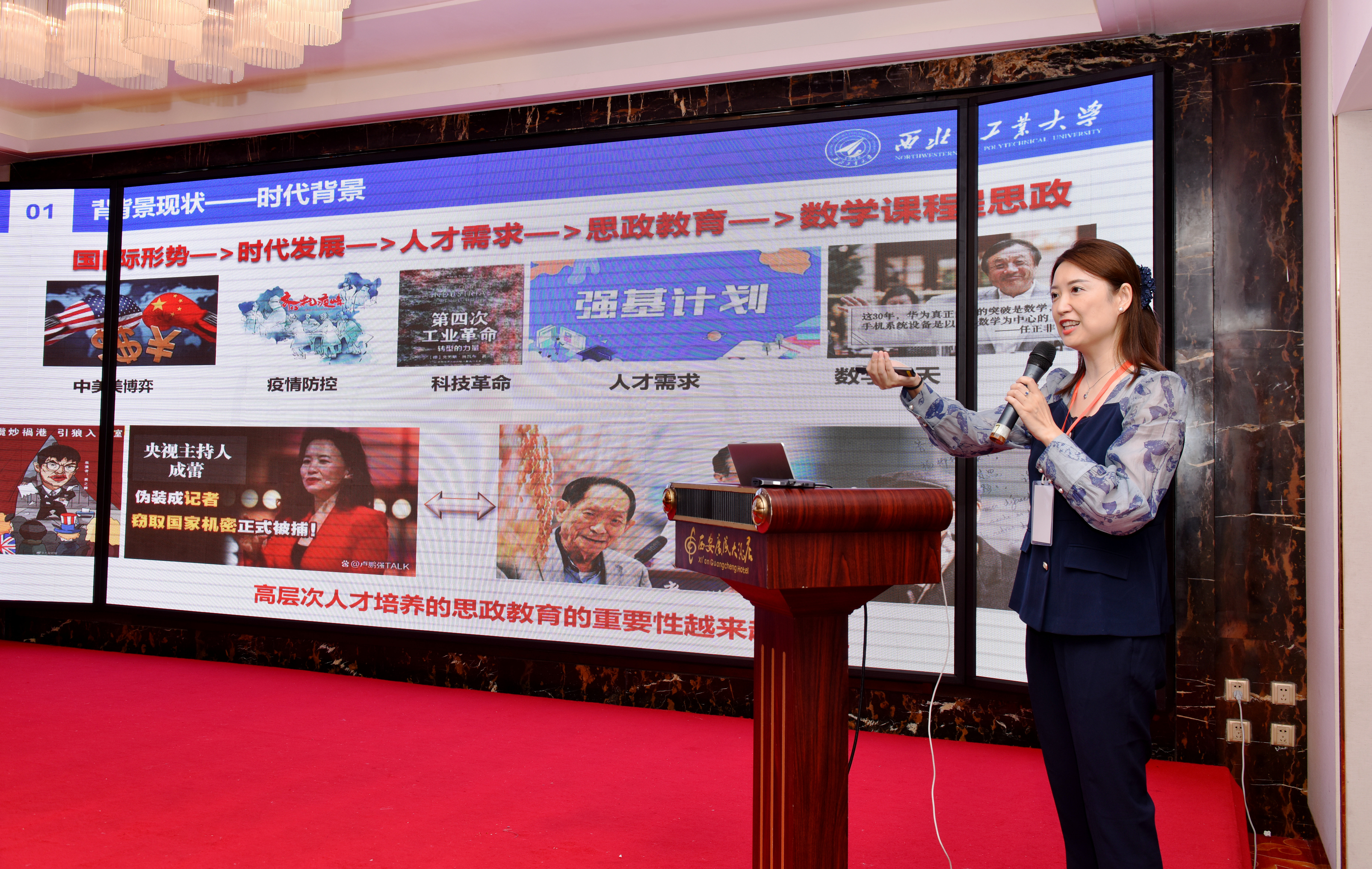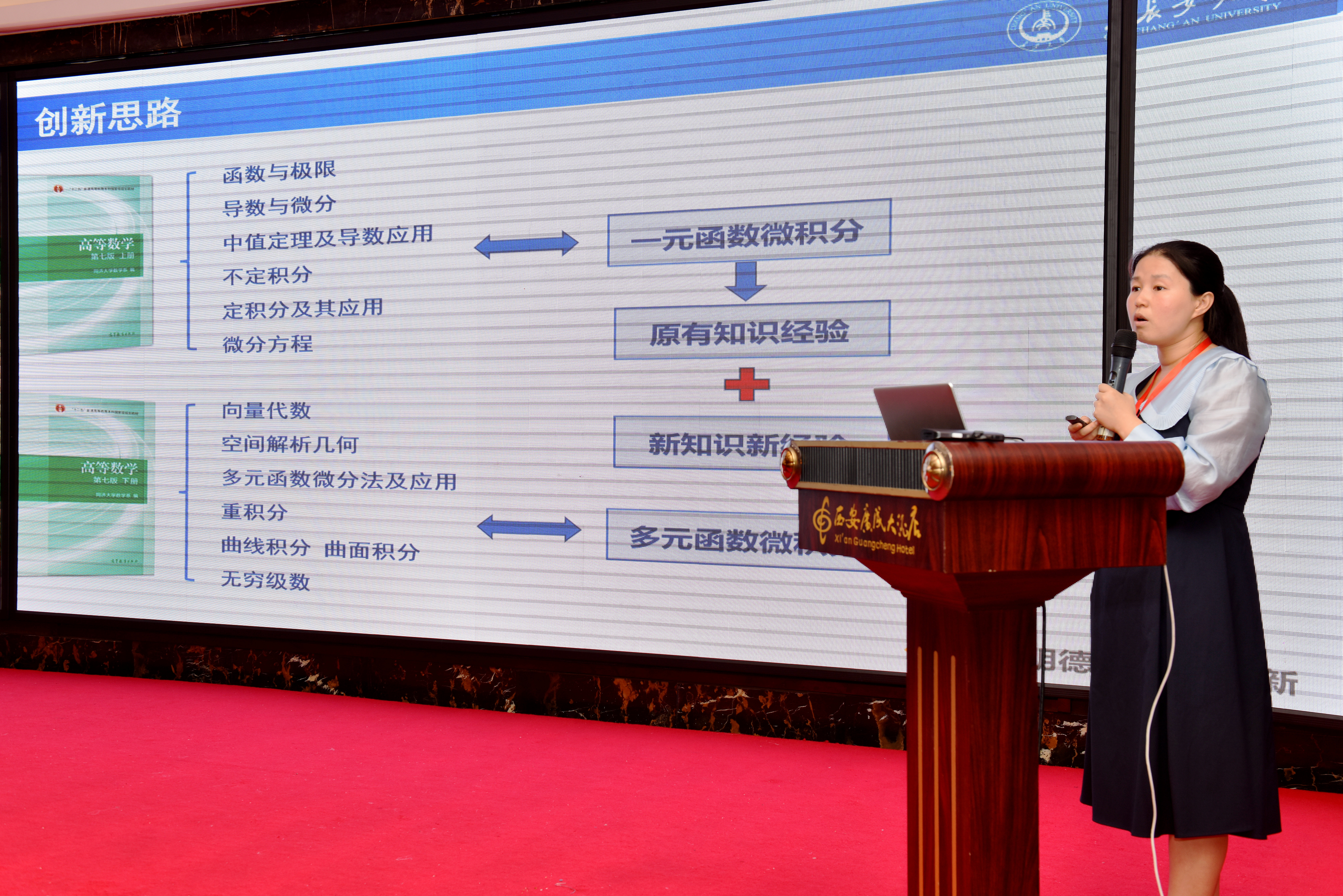 会议的特邀专家分享环节由西安交通大学城市学院副校长朱旭教授主持,特别邀请k动漫 副院长都琳教授以“肩负时代使命 践行课程育人——《概率论与数理统计》课程思政探索与实践”为题进行分享,特别邀请长安大学杨莹老师以“基于建构主义学习理论的《高等数学(下)》课程教学创新——以‘对弧长的曲线积分’为例”为题的课程教学创新示范交流分享。