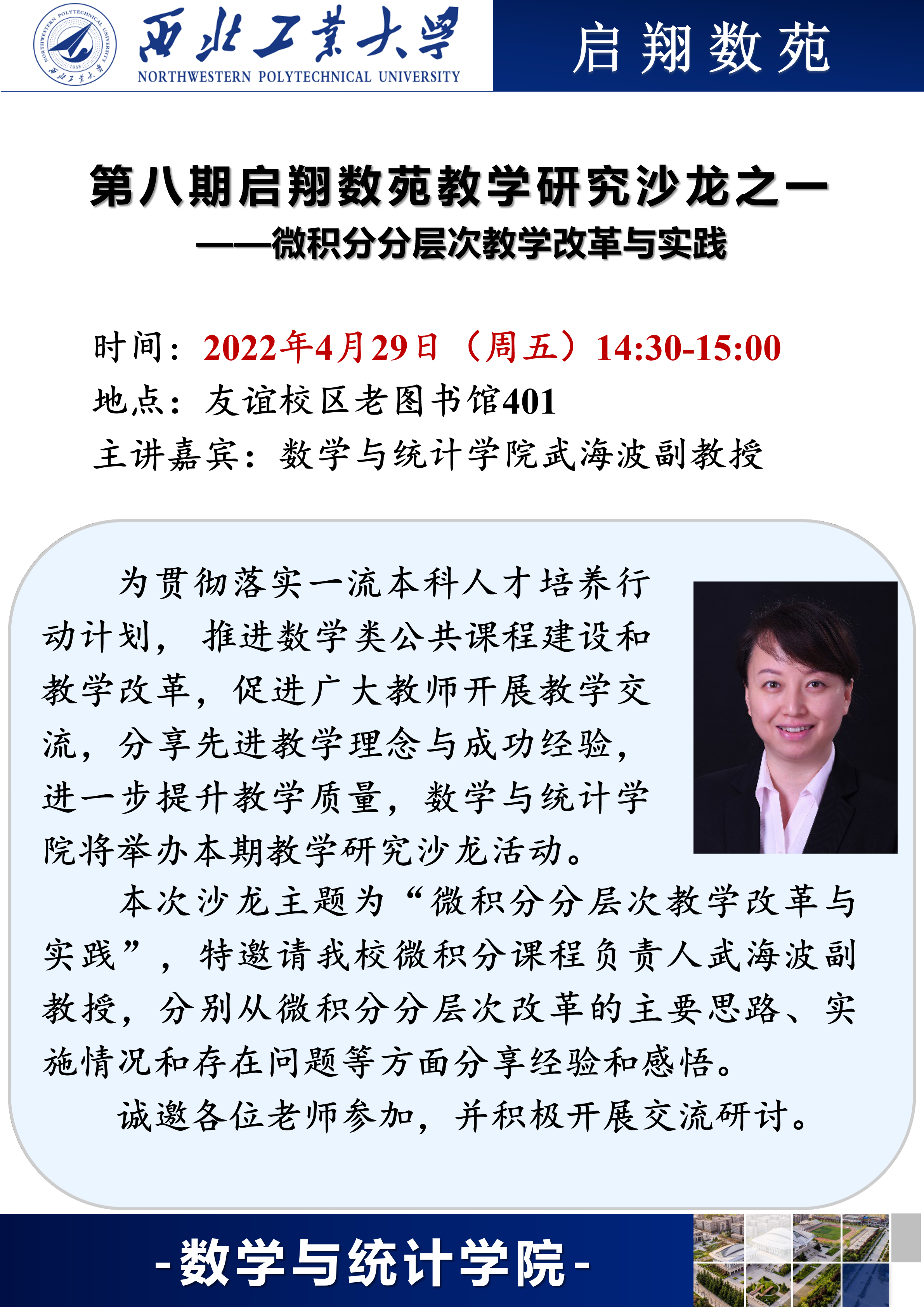 为贯彻落实一流本科人才培养行动计划,推进数学类公共课程建设和教学改革,促进广大教师开展教学交流,分享先进教学理念与成功经验,进一步提升教学质量,k动漫 将举办第八期教学研究沙龙活动。