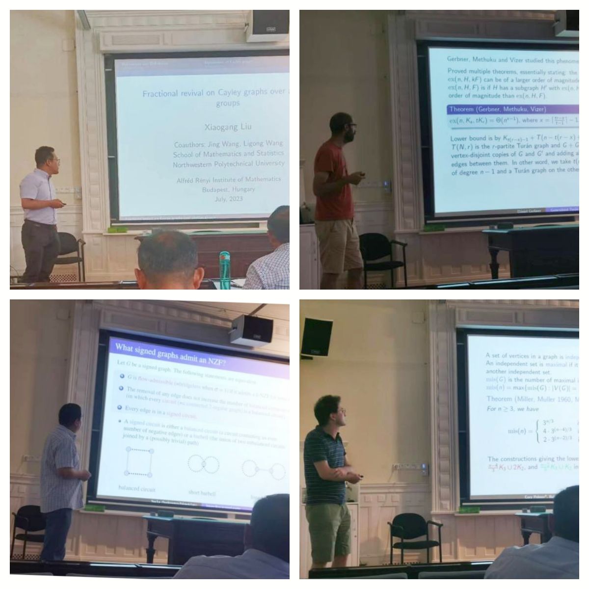 2023年7月7日至11日,应欧洲科学院、匈牙利科学院Gyula O.H. Katona院士的邀请,我院图论与组合数学团队出访匈牙利阿尔弗雷德·雷尼数学所,并参加了“中匈图论双边研讨会”。在匈期间,出访团成员与雷尼数学所以及罗兰大学相关部门负责人就科研交流与合作、联合培养学生协议签署等相关事宜进行了深入探讨,并达成了进一步加强合作的意向。此次出访取得圆满成功。